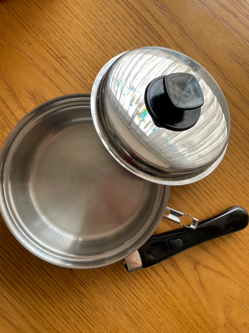 鍋の側面の記載 Ultra Vita Craft Ultra Ply Nicromium Steel 13-No.9201 Made in USA 外径約20センチ 深さ約5.5センチの小さめのフライパンで、蓋付きです。 取手は取り外して収納できます。 IHを含む全てのクッキングヒーターに対応しています。 何年も前に購入しましたが、使ったのは3回ほどで、ずっとしまってありましたので、中は綺麗です。 キャロット初心者です🔰 よろしくお願いします。