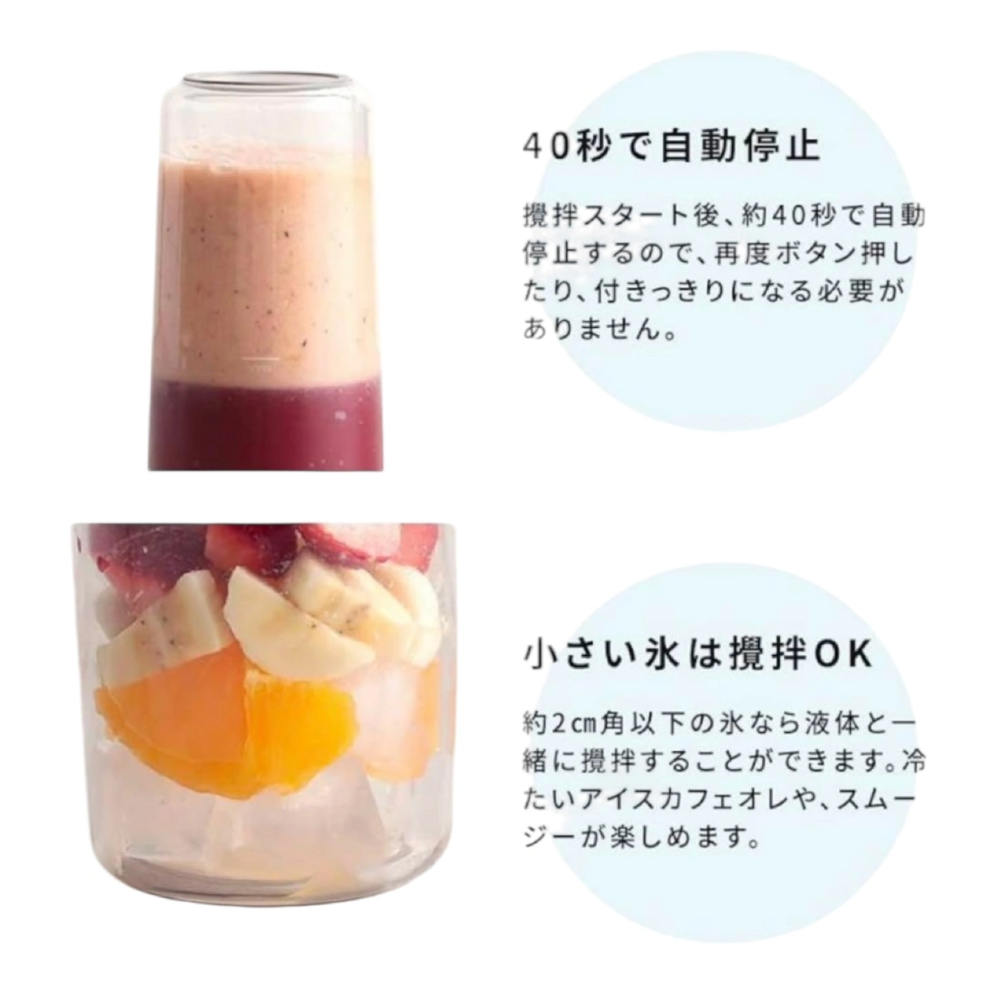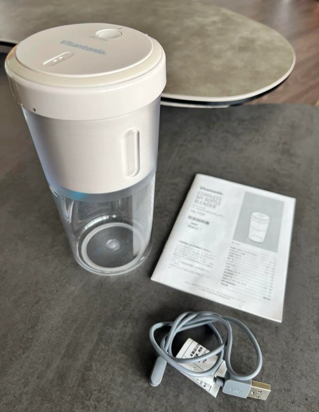 今年の5月に購入し、数回の使用で状態良いです。目立った傷・汚れはありませんが、中古品の為、ご理解ある方よろしくお願いいたします。離乳食づくりやプロテインシェーカーとしても。 ※ 現在も、Amazonでは3,960円で販売されています。 【商品解説】 もっと手軽に元気と綺麗をいつでも、どこでもコードレスマイボトルブレンダー。 ●コードレスだからコンセントの位置を気にせず、空きスペースでどこでもできるのでストレスフリー ●300mlボトルだからボトル形状だから、作ったスムージーをそのままの飲める少量のドレッシングも作れ、作りたてをそのままサラダにかけられる ●ポータブルだから会社、外出先、アウトドアでもプロテインのシェイクやスムージー作りができます ミキサー、ブレンダー、シェイク