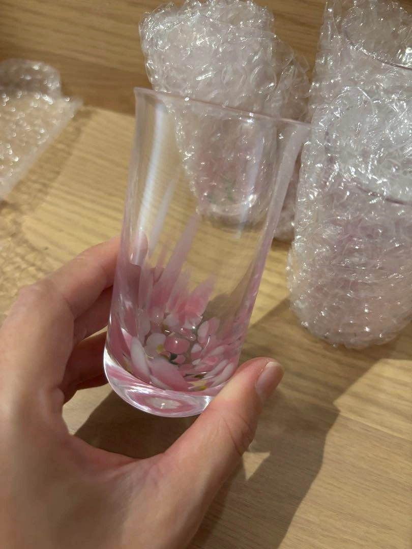 小さめの可愛らしいガラス製のグラスです。 使用する機会がないため、出品しました。 とても素敵です♡ - Color: Pink with floral design - Material: Glass - Type: Drinking glass ご覧いただきありがとうございます。 ご希望の方はお気軽にご連絡ください。