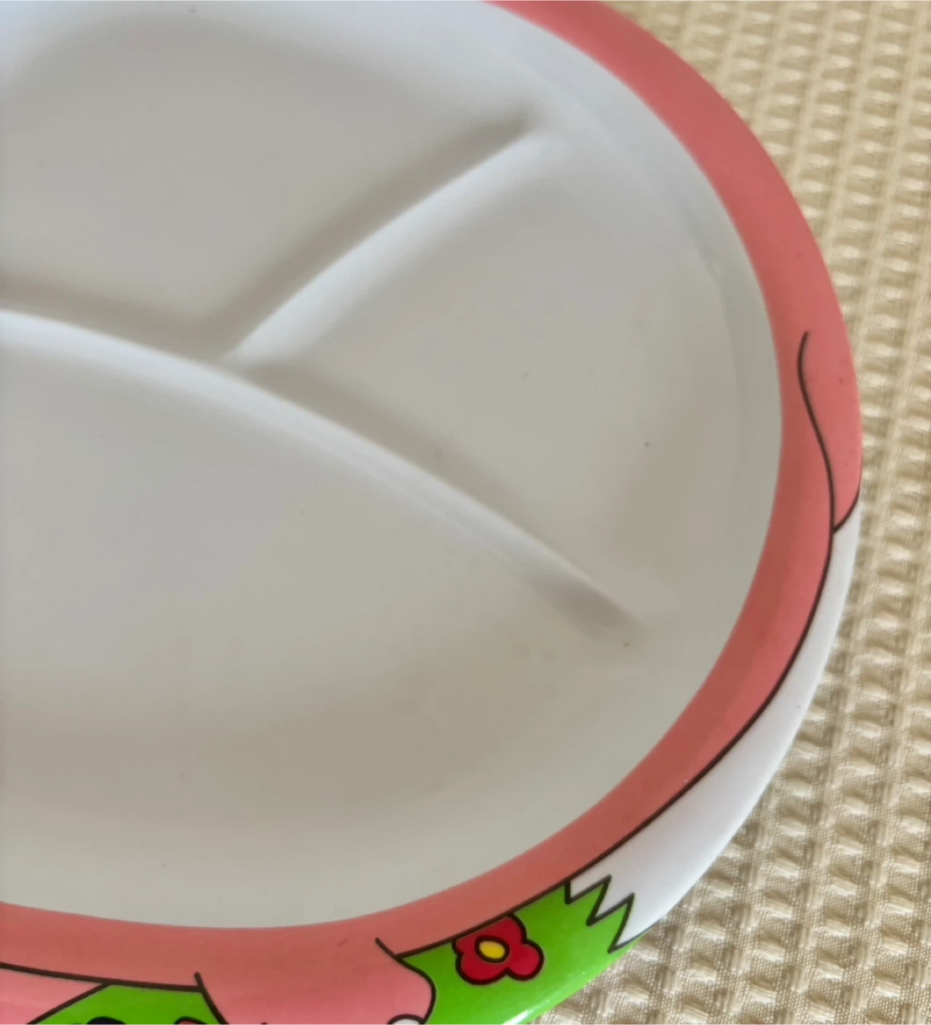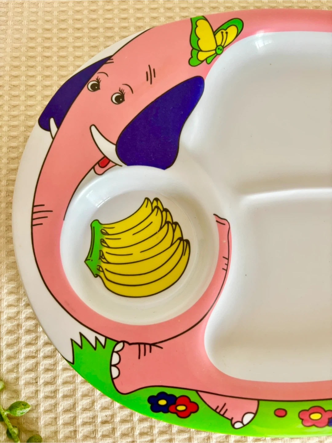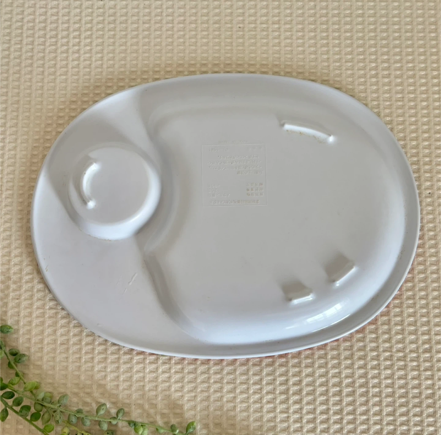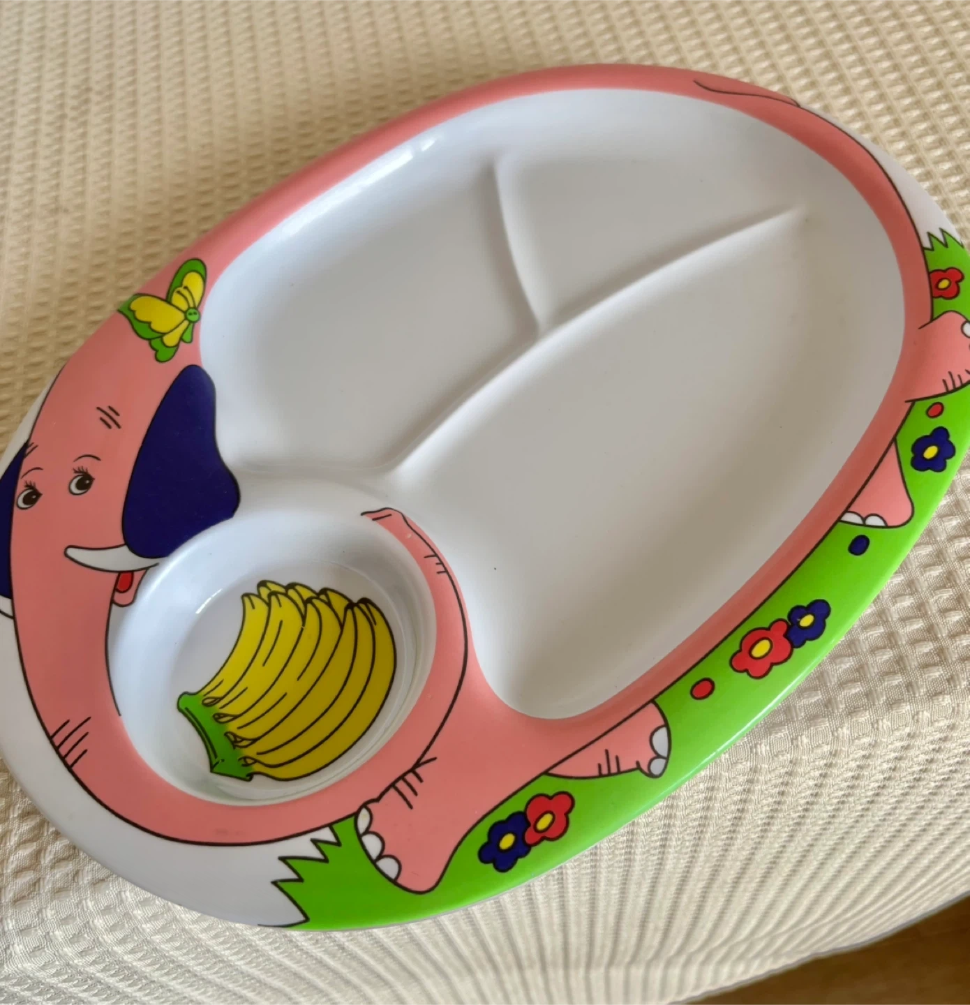 ピンクの象のイラストが可愛い、仕切り付きの子供用プレート。デパートのレストランででてきそうなちょいとレトロな雰囲気のお子様ランチプレートです。 酷いダメージは無いかと思いますが、 自宅保管品、中古品になります。 ご理解ある方にお譲りします。 サイズ 約31.5センチ✖️24センチぐらい ※一番大きな部分 - デザイン: 象のイラストとバナナの絵柄 - 形状: 仕切り付きプレート - 色: ピンクとホワイト - 素材: プラスチック製 ご覧いただきありがとうございます。 #ピンクの象 #ぞう #象 #お子様ラ ンチ #ランチプレート #皿 #プレート #お子様食器 #プラスチック #昭和レトロ