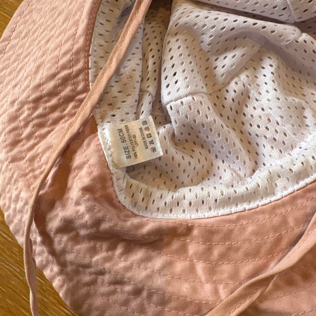 通気性のあるメッシュ内張りとサイズ調整機能付きのピンクのバケットハットです。 - 色: ピンク - 素材: 通気性のあるメッシュ内張り - 調整機能: ひも付きでサイズ調整可能 - デザイン: バケットハットスタイル - サイズ: 50cm ご覧いただきありがとうございます。 ご希望の方はお気軽にご連絡ください。