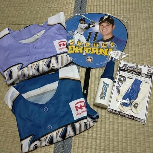 フリーサイズの応援ユニホーム2着 ロケット風船3個、空気入れ ファイターズ時代の応援ビッグうちわ ビニール袋から出していません。 自宅マンションまで取りに来られる方でお願い致します! ご希望の方はお気軽にご連絡ください。 #大谷翔平
