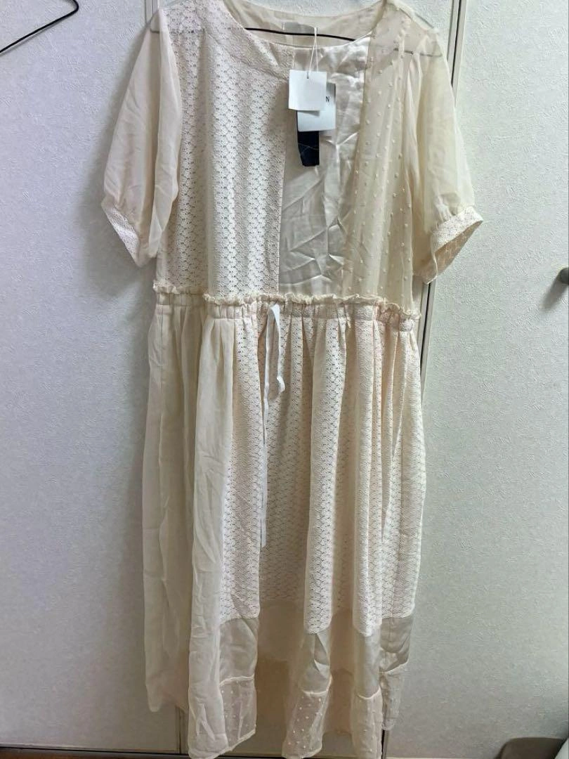 【新品未使用】merlot plus アイボリー 半袖ワンピース インナー付きF 断捨離中のため、出品します。 とても可愛いです!でも可愛すぎて、私には着こなせないで保管されたままだったので、ぜひどなたか使用してください!! 【購入前に確認ください】 ▼新品未使用です。保管によるシワなどありますが、素材的にアイロンなどはかけずに、現状のままお渡し予定です。 ▼タグ付きですが、タグの折れあります。 ▼インナー付きのワンピースです。インナーは伸縮性があります。アシメトリーでこれ1枚でおしゃれに着込ませるワンピースです。 ▼サイズは写真を合わせて確認 ください。 インナー 身幅 約40cm 着丈 約104cm ワンピース 身幅 約45cm 着丈 約115cm ▼新品未使用なので、難はないと思いますが、商品自体はサンプル品なども扱う衣料品店で購入しております。 ---------- アイボリーの半袖カットソーワンピース、ウエストゴムでフレアシルエット。インナー付き。 - 色: アイボリー - デザイン: 半袖、フレアシルエット - インナー: ワンピース(アイボリー) ご覧いただきありがとうございます。 ご希望の方はお気軽にご連絡ください。