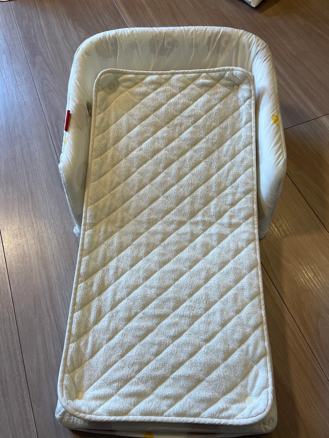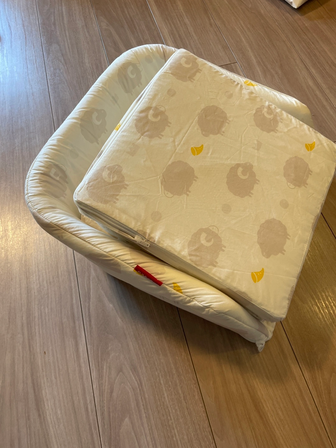 ファルスカのベッドインベッドです。 我が子は新生児期にお昼寝、夜寝、お風呂上がりの一時おきとして使用しました。 5ヶ月頃まで使用しました。 シープ&ホルン柄の明るいオフホワイトです。 汚れても全て洗濯可能で清潔に管理できます。 吐き戻し防止の斜めのクッションが便利でした。 様々な用途があり椅子の代わりや補助チェアなどになります。 受け渡しは東急多摩川線内、東急東横線自由が丘、多摩川、田園調布も可能です。