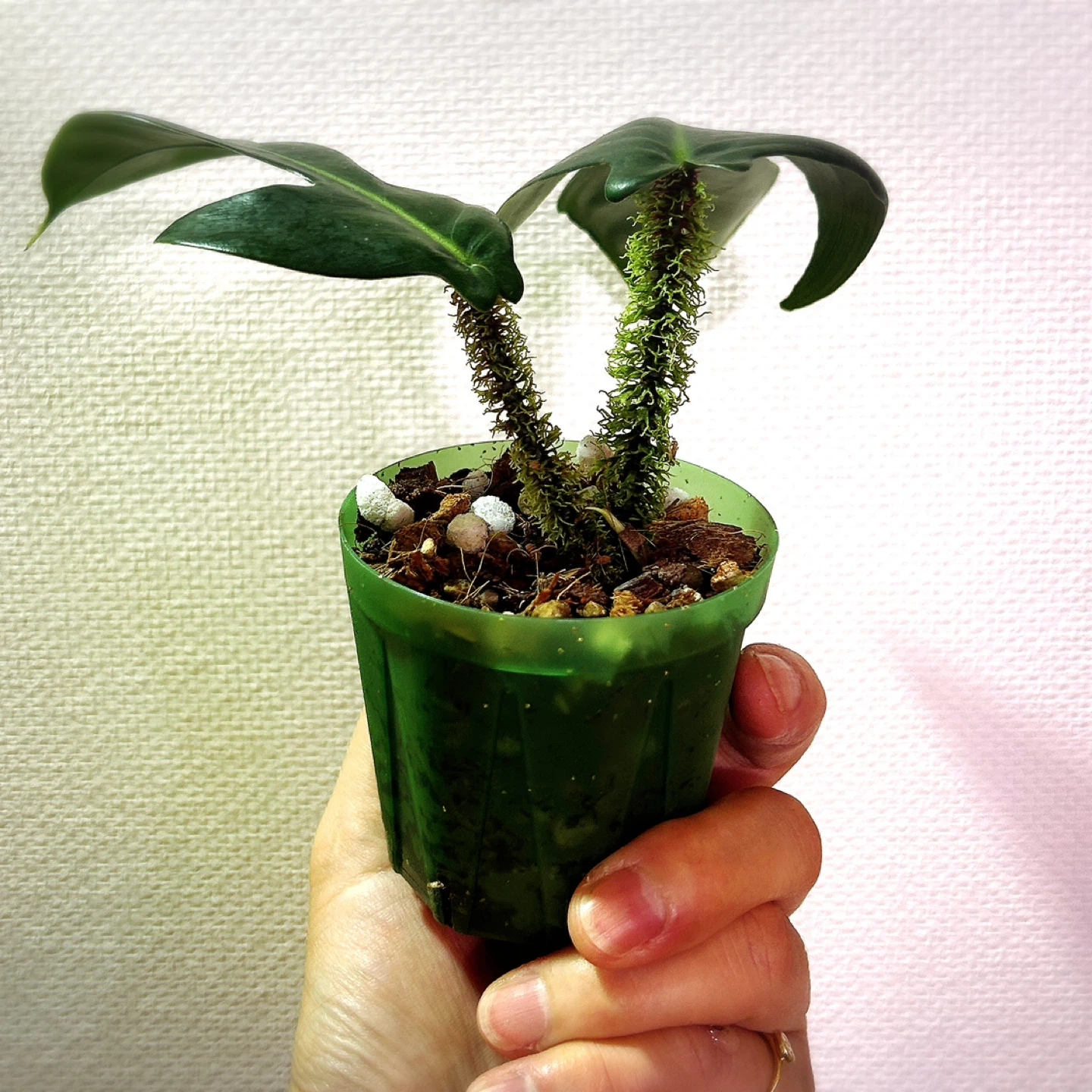 フィロデンドロン スクアミフェルムです。 葉柄(ようへい)がモケモケして可愛いです。新葉が出る時の葉柄が真っ赤なのが特徴です。 参考画像載せておきます。 吊り鉢もアリです👍 ・状態:良好、プラ鉢入り発根済み (植物なので形が変わっていきます。ご了承ください。) ・育て度:初級、簡単で強い、曇り空程度の光必要、かなり楽 サイズ感は写真でご理解ください