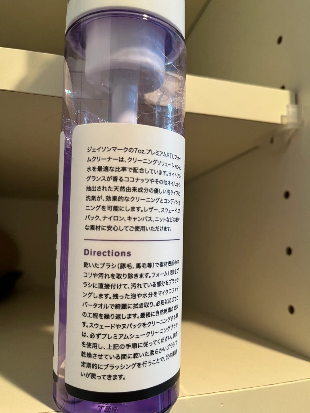 7oz RTU フォームクリーナーは、クリーニングソリューションと水を最適な比率で配合しています。ライトフレグランスが香るココナッツやその他オイルから抽出された天然由来成分の優しい泡タイプの洗剤が、効果的なクリーニングとコンディショニングを可能にします。レザー、スウェード、ヌバック、ナイロン、キャンバス、コットン、ニットなどの様々な素材に安心してご使用いただけます 使用済みですが写真2枚目の残量をご確認ください。2/3は残っています。