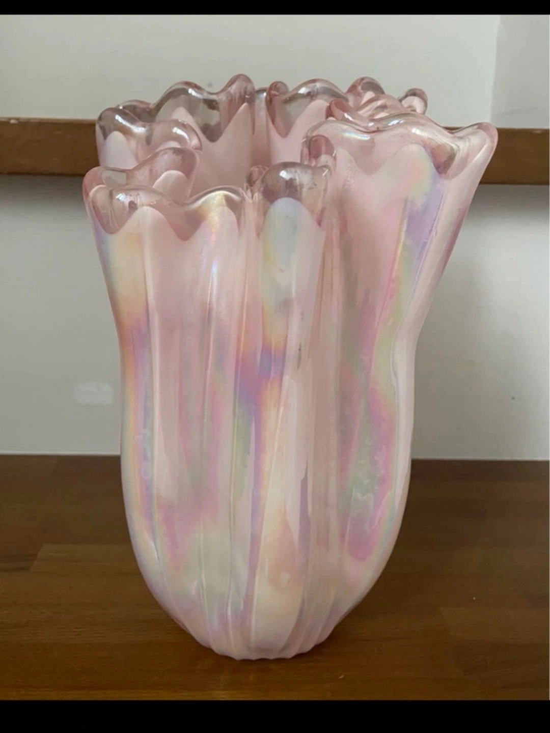 ビンテージのオーロラフラワーベース カラー ピンク サイズ 直径 最大約15cm 高さ 最大約21cm 綺麗なピンクにオーロラ加工された、チューリップのようなフラワーベースです。 ドライフラワーや生花に。 インテリアに映えます。 一点ものの希少なヴィンテージの商品です。経年による細かな傷、スレ、色落ち、質感などがある場合があります。 ヴィンテージやアンティーク特有のものですので、古いものならではの味わいとしてお楽しみいただければ幸いです。 プロフ一読お願いします。 引き渡し場所も、良くご確認ください。 三軒茶屋駅より距離があり、徒歩かバスになります。