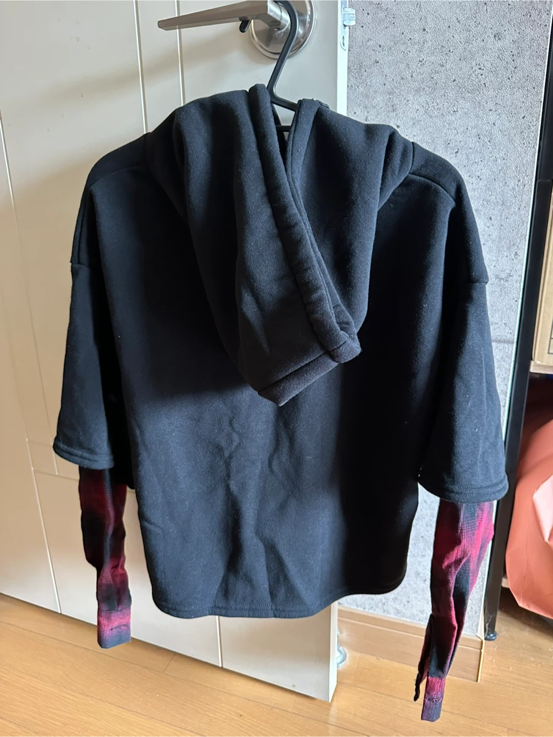 あたたかさフードパーカー レディースフリーサイズ ショート丈なので男女問わずお子さんにも着せられると思います✨ 160cm着用で腰骨あたりです。 ちょっとボーイッシュすぎたので一回しか着ていません!