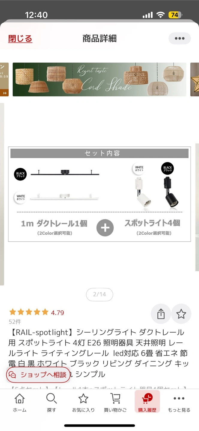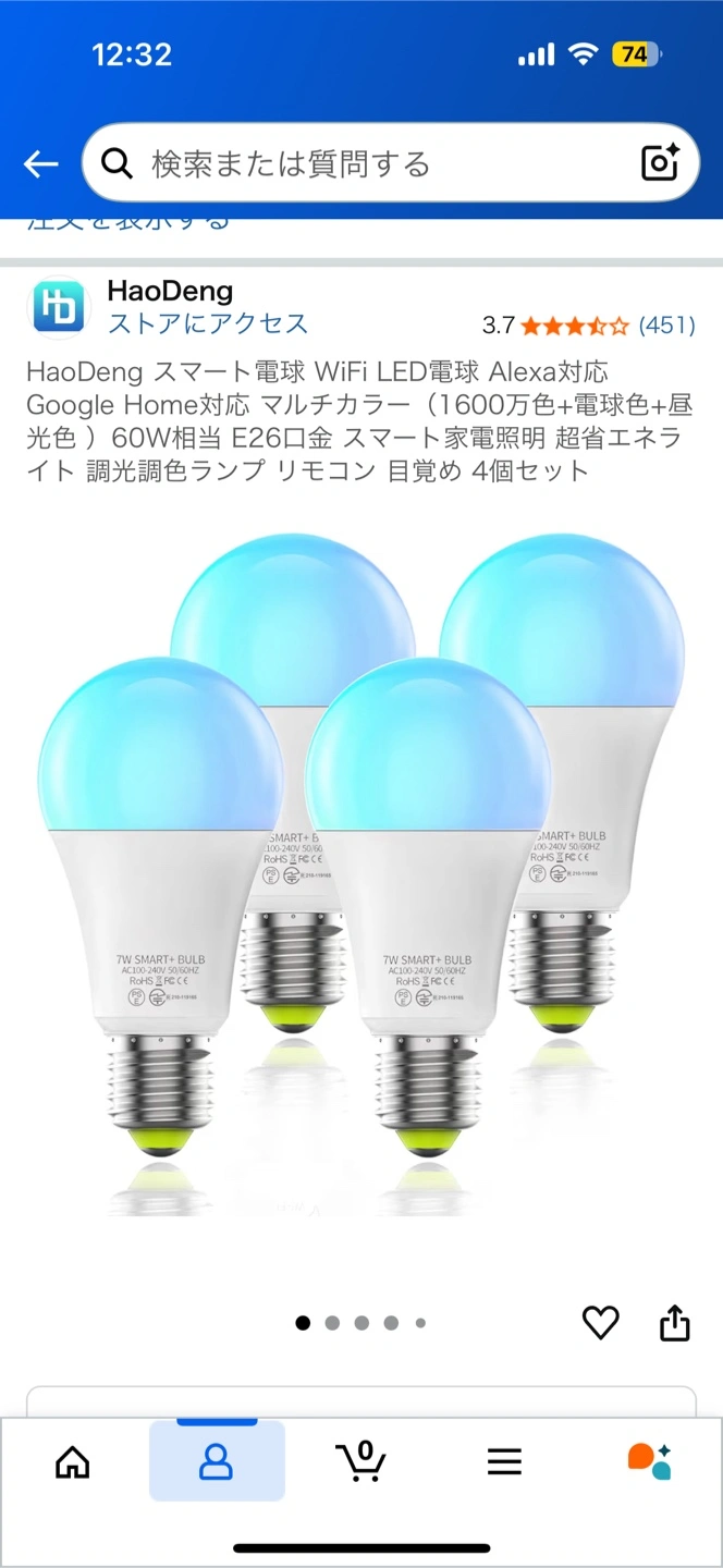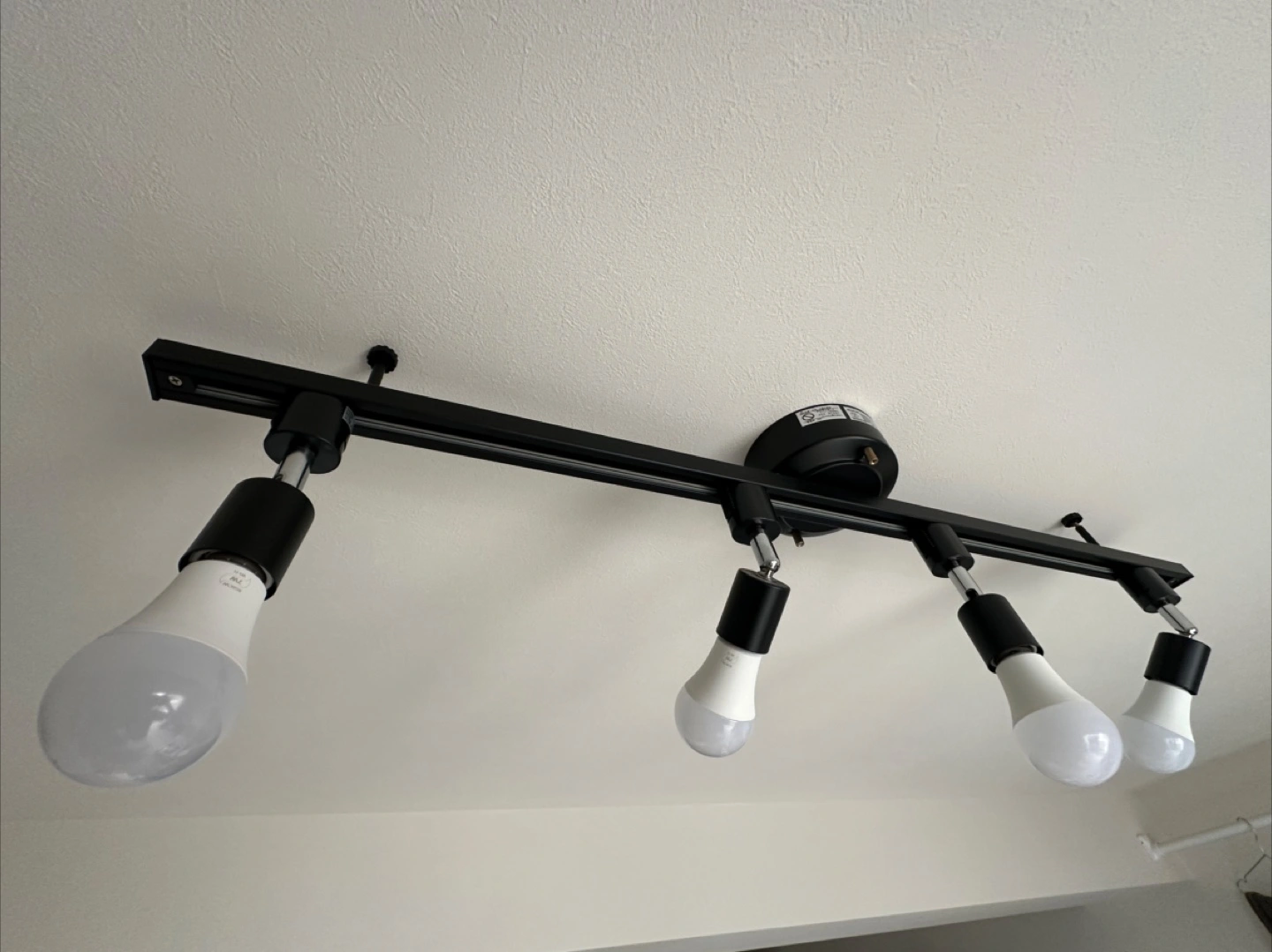 RAIL-spotlightのシーリングライト、ブラックレールです。 Hao Deng のスマート電球が4つ付属します。 ◎シーリングライト 工事不要で、簡単に取り付けられるタイプです。 ダクトレール:(約)幅1000x奥行き130x高さ78mm(1メートル) スポットライト:(約)直径40x高さ133mm 重量:約1.400g 対荷重:約5kg 材質:スチール 定価:¥6.600 取付方法:シーリングプラグ 定格電圧(周波数):AC100V(50/60Hz) 対応電球:口金/E26 15W✕4まで 点灯方法:壁スイッチ ◎スマート電球 Hao Deng(Magic Home Proのアプリを使います) 口金:E26/E27対応 サイズ:60*60*118mm 入力電压:AC100-240V, 50/60HZ 定格消費電力:7W 色温度:2700K-6500K 定格寿命:約20,000時間 照射角度:約120° 全光束:600ルーメン 定価:¥4.399 両方とも、4年ほど使用していますが目立った汚れはありません。 ご質問等ございましたら、お気軽にコメント下さいませ。