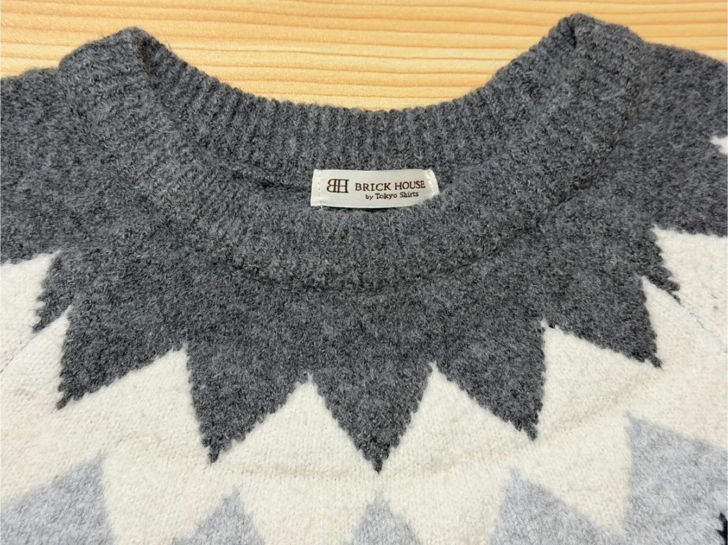 BRICK HOUSE by Tokyo Shirts ブリックハウス バイ トウキョウシャツ 伸びよくやわらかな着心地のジャガード編みプルオーバー ジグザグ柄がコーディネイトの程よいアクセントになる一枚 合わせやすさ抜群のグレーです 5,000円程度で購入しました 数回着用しましたが、サイズが合わなかったのでしまったままでした、比較的キレイな状態かと思います - ブランド: BRICK HOUSE - 色: グレー系 - デザイン: ジグザグ模様 - 袖丈: 長袖 - 素材: ウール混合 サイズ M 肩幅:52㎝ 着丈:62㎝ ゆき:74㎝ ※素人採寸につき誤差はご容赦ください ご覧いただきありがとうございます。 #TokyoShirts #BRICKHOUSE #東京シャツ #ブリックハウス #オフィスカジュアル #カジュアル #ニット #プルオーバー
