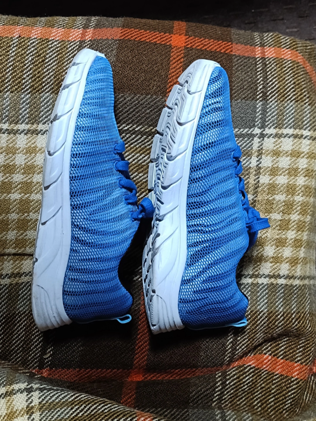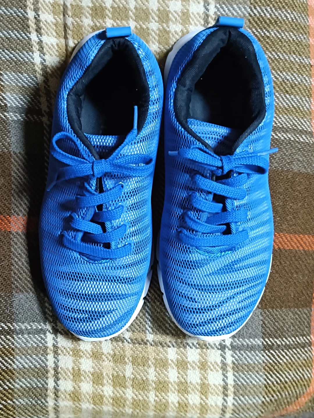 鮮やかなブルーのメッシュ素材👍 スポーティーなデザインで、とても軽量で歩きやすいです、ちょっと果たし感覚で履けます✌️ 普段使いや軽い運動によく合います 24.5センチ ソールは白です、これからの時期にピッタリなシューズです 購入後5回くらい履きました、3回目までは何でもなく足にフィットしていましたが、その後どうしてか右小指が当たり残念ですが出品しました。 よく洗っておきました、中古ですがほぼ新品?な感じです‼️ 定価は2980円での購入でした❗
