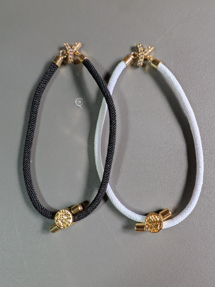ブレスレット2本セットです ・カラー:ブラック、ホワイト ・状態:使用感少なめ 中古品であることご了承ください Yとありますが、カップルで、使用するのも、2本使いも、素敵ですよ…