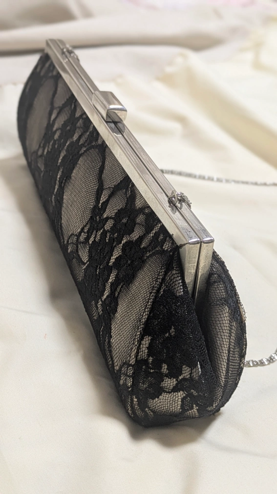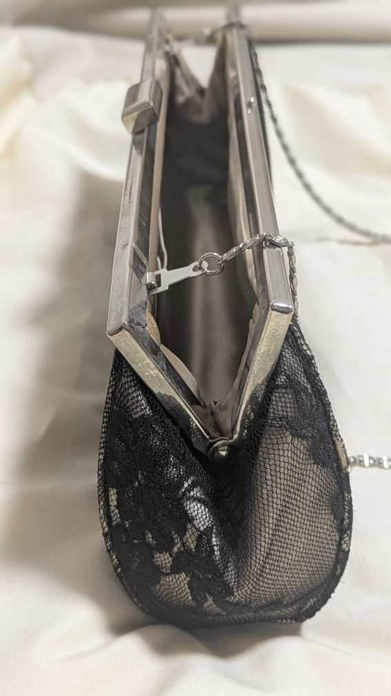 光沢ある抑えめな色味ゴールドに黒のレースは華やかでありながら上品。 シンプルなお洋服にあわせてもアクセサリー代わりにゴージャスなアクセントになります。 郵送は受け付けておりませんので取りにきて頂ける方でお願いいたします。 もしくはプラス500円。日中になりますが、等々力駅までお持ちいたします ・カラー:ブラック/ゴールド ・レースデザイン ・チェーン付き ・パーティー チェーンは中にしまえます。 縦10.5cm 長さ32cm 幅(一番広い部分6cm) バッグ底幅4cm/長さ28cm