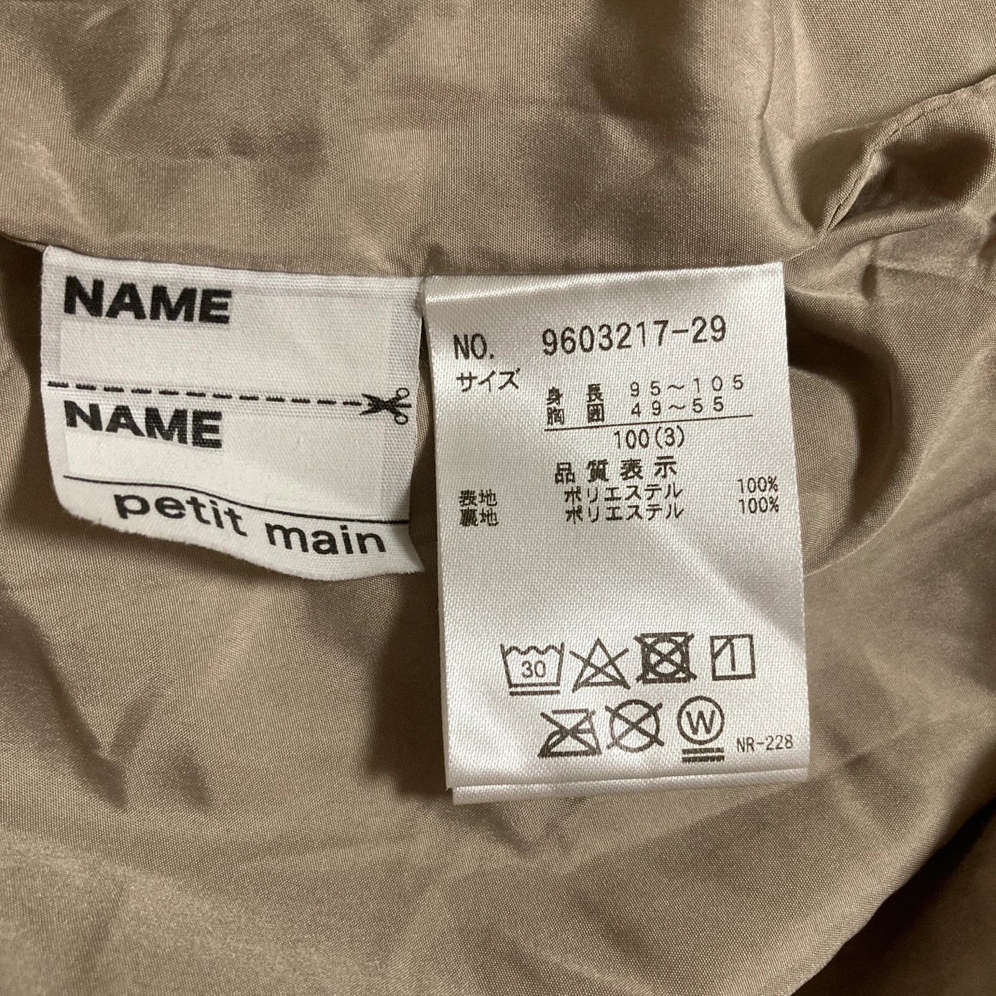 プティマインのアウターです ・ブランド:プティマイン ・サイズ:100cm(3歳) ・色:ベージュ ・素材:ポリエステル100% ・状態:使用感少なめ 中古品であることご了承ください 写真は実物よりも色が濃く見えています 【受け渡し場所は、下記いずれかご都合の良い場所で調整致します】 ・南台商店街内 ・南中野区民活動センター ・広町みらい公園