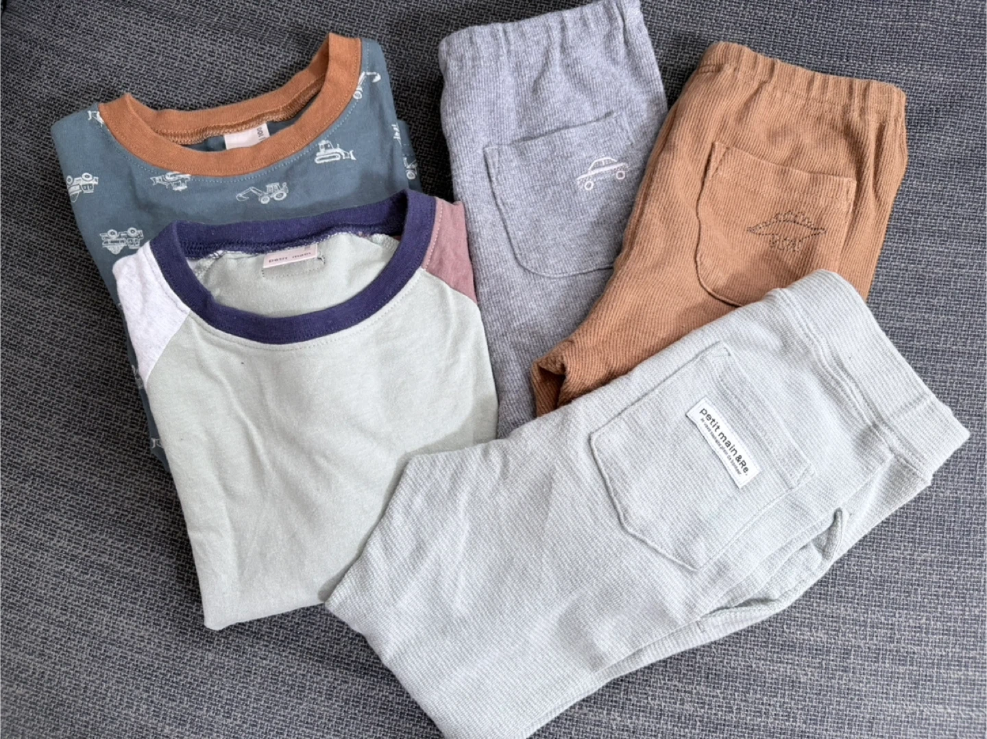 プティマインの子供服まとめ売りです ・トップス2点、ズボン3点 ・サイズ:100㎝ ・全体的に使用感あり 中古品であることご了承ください 車での移動が多いので、戸塚周辺ならお届け可能です。