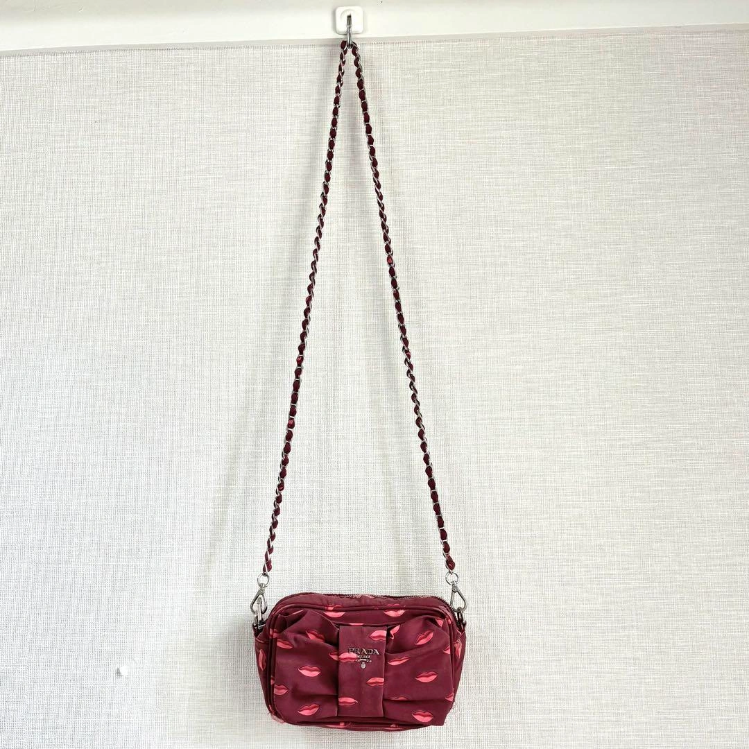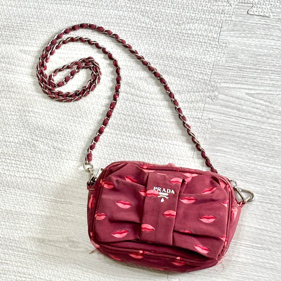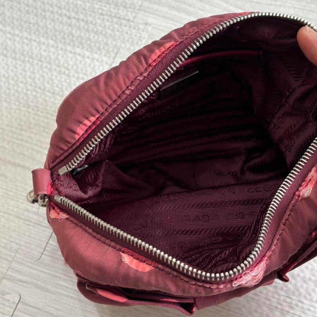 イタリアにて購入しました。 購入年限定柄のバッグです。 携帯やお財布がちょうど入るミニサイズ! 表面の破れがありますが 内部は比較的綺麗で、 まだまだお使いいただます。 [ブランド] PRADA プラダ [カラー]えんじ色(レッド系)/シルバー金具 [素材]ナイロン [サイズ] W約18×H約11.5×D約5.5×ショルダー斜め掛け可 [仕様] 開閉式:ファスナー 内側: オープンポケット x 1 [付属品]ショルダーストラップ ■状態 表面4角や、上部に破れあり。擦れ傷、ヤケあり 写真でご確認ください。 ご希望の方はお気軽にご連絡ください。