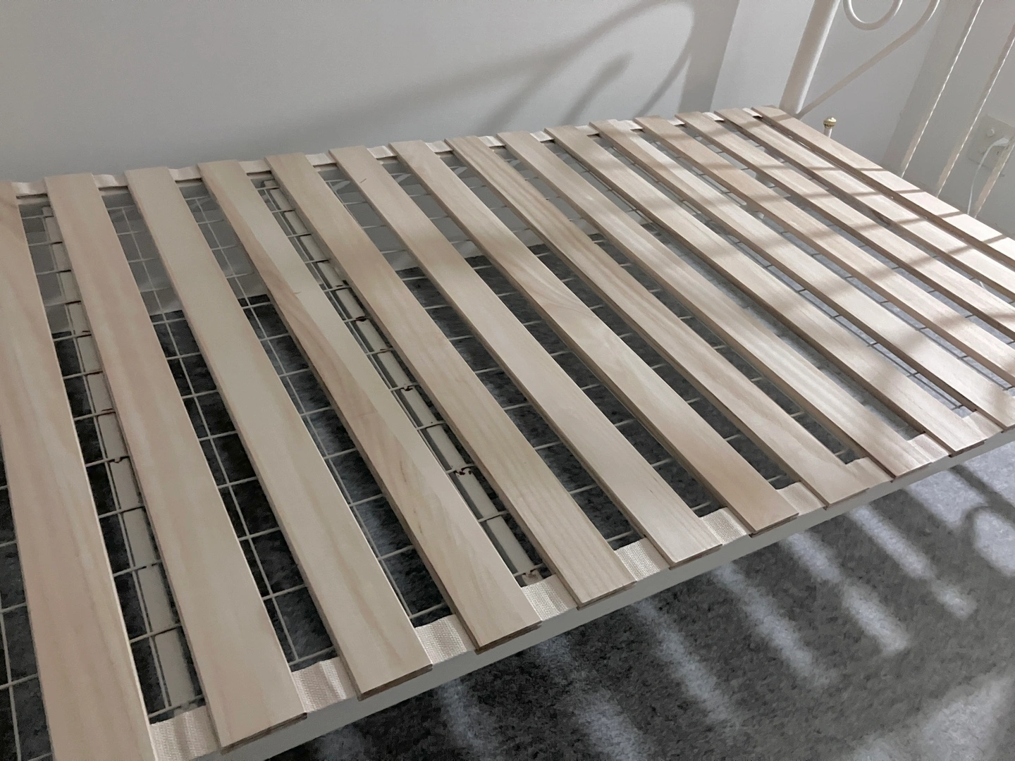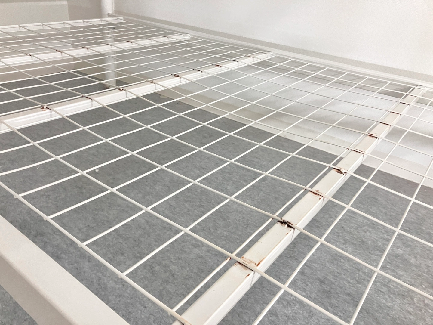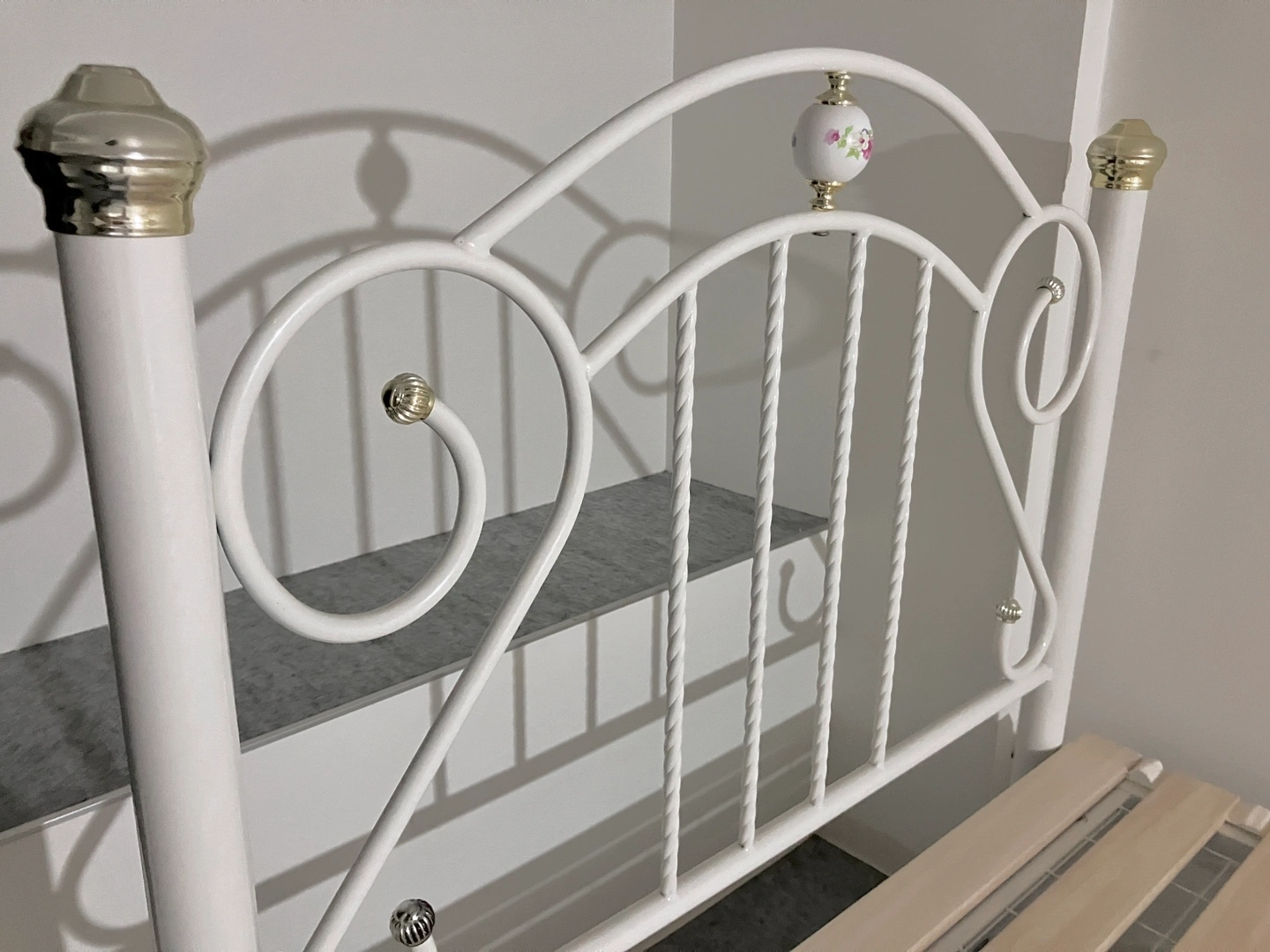 ロフト部屋で15年ほど使用したお姫様ベッドです。 まだまだしっかりとしていますが、ところどころサビ変色や傷もあります。画像をよくご確認ください。 ⭐︎ベッド内寸97×197 (シングルサイズ) 97×200の寝台1つ 前後の柵2つ の3つに分割できます。 組み立ては簡単です(説明書あり) 大きなお車で、複数名での運搬がオススメです。 ご 心配な方は、お取引をお控えください。 ※1500円で美品スノコ(使用期間半年)もお付けできます。ご希望の場合はご相談ください※ ※スノコサイズ100×200(大きめですが、布テープで繋がっているため、ピッタリと敷く事が出来ます) マットレスをご利用の場合、スノコは不要かと思います※