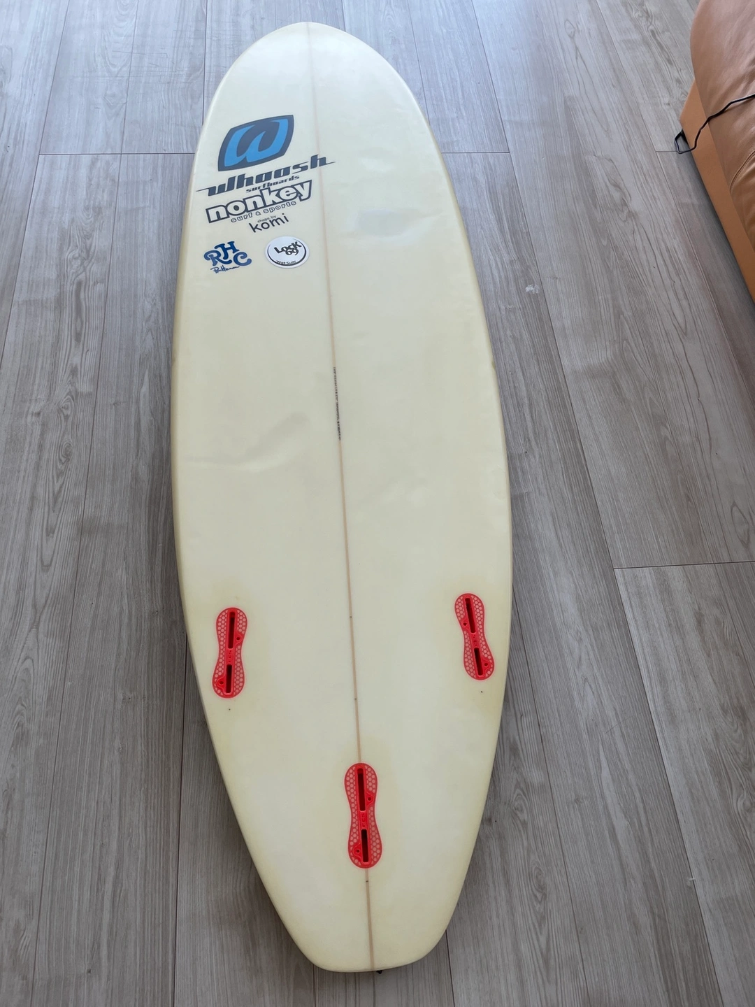 千葉鴨川のプロショップ、ノンキーにてオーダーしたボードでサイズは5.11,48,6.1で日焼けによる黄ばみはありますがショップにてリペア済みで直ぐに使用出来ます。 EPS故に軽くセンターで厚みを出しつつレールをテーパー気味に更にノーズ・テール共にロッカーを押さえてありますのでテイクオフが早く、小波やマッシーな波でも切り返しが楽で良く走ります。 *以前、送料でのトラブルがありましたので東京都内での手渡しを希望します。   御質問等ありましたらお気軽にどうぞ 【ブランド】whoosh 【カテゴリ】ショートボード 【商品の状態】傷や汚れあり 【サイズ】5'11" 【素材】EPS 【カラー】ホワイト系 フォーム素材···EPS フィンシステム/フィンボックス···FCS フィン本数···トライフィン
