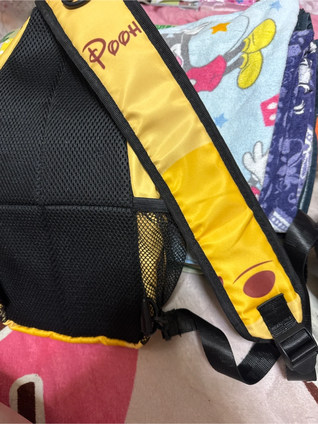 プーさんのリュックです。 ・カラー:イエロー ・デザイン:プーさんの柄 ・状態:使用感少なめ 中古品であることご了承ください 気にしなきゃ大人もアリかもです 子供にも使えます 斜め掛けで左右変えられます。