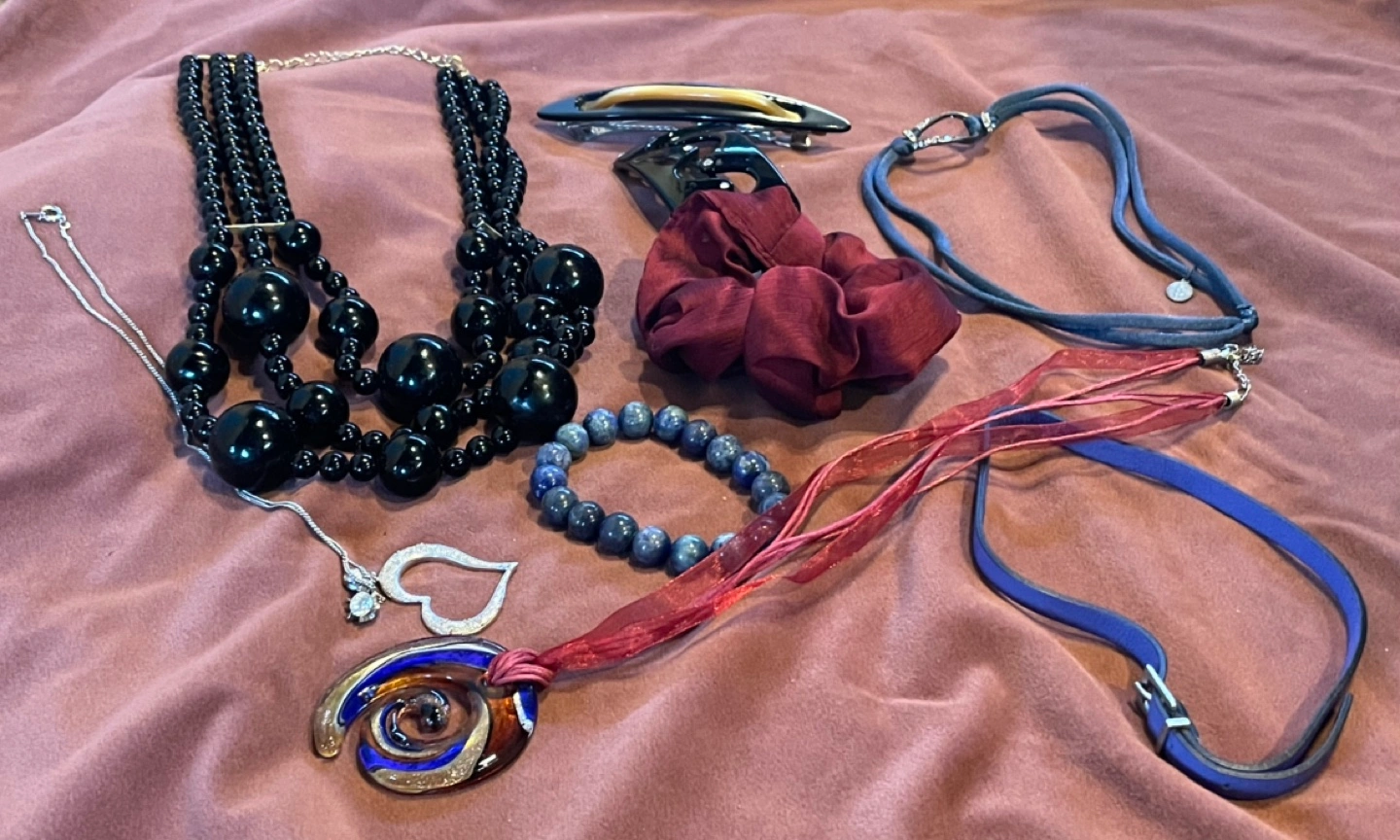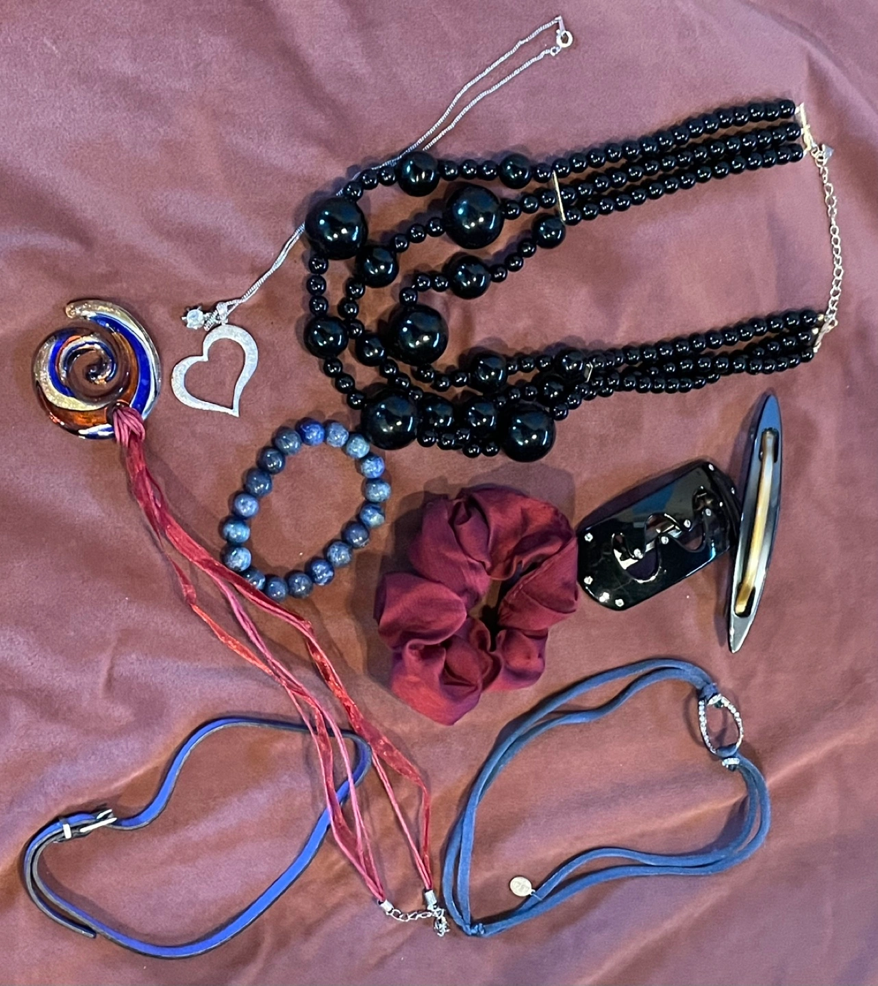 ⭐️ヘアアクセサリー acca ブルー×パヴェのヘアバンド エンジ色のシュシュ 黒とゴールドの細いバレッタ 長さ11cm 黒とジルコニアのスクエア・バレッタ 長さ9・5cm 幅4cm ⭐️アクセサリー 黒丸 ボリュームネックレス ガラス渦巻きペンダント ハート形パヴェ ネックレス 青玉ブレスレット LUPO 青色革ブレスレット お受け渡しは、蘆花公園児童園入口、千歳烏山駅、千歳船橋駅のどれかで、よろしくお願いします