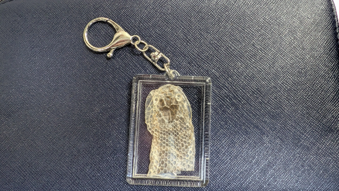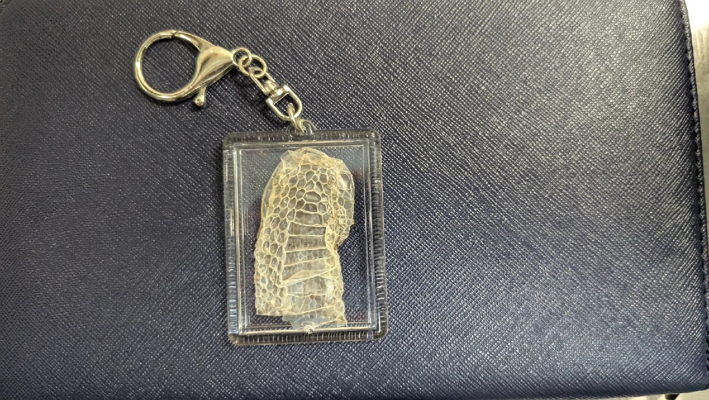 ヘビ皮のキーホルダーです。 ・素材:ヘビ皮、プラスチック ・状態:目立つキズなし ハンドメイド
