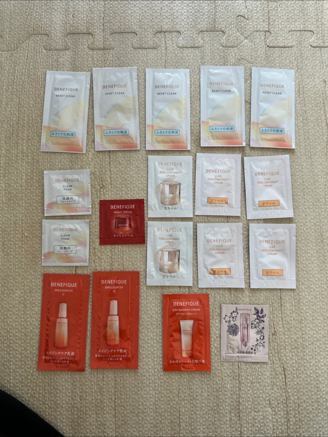 ベネフィークのサンプルセットです。 リセットクリア ふきとり化粧水 5個 洗顔料 クリア フォームタイプ 2個 ナイトクリーム 1個 リュクス リブルーム ナイトクリーム 6個 エマルジョンEX C エイジングケア乳液 2個 デイバリア 日中用クリーム 化粧下地 1個 高保湿美容液 ハイドロジーニアス 1個 画像でご確認ください。 神経質な方の購入はご遠慮願います。