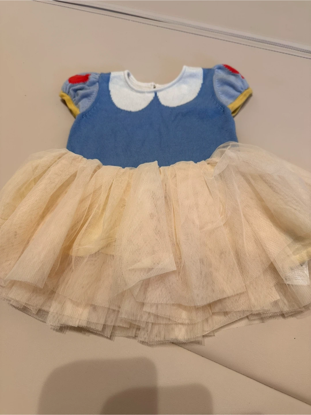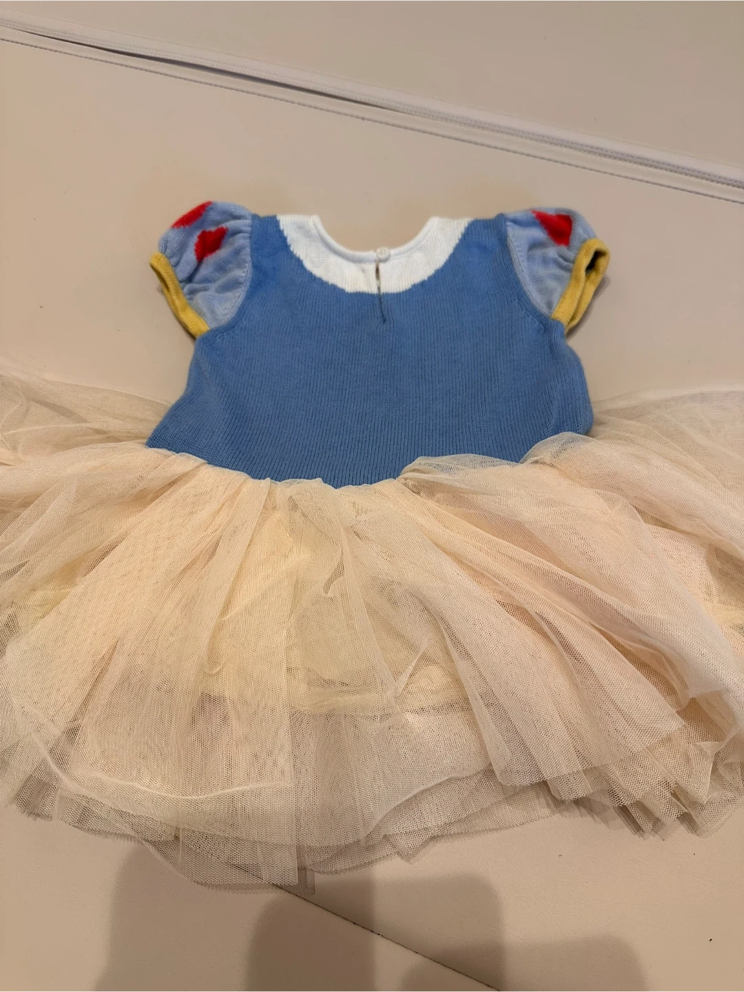 ベビーギャップのワンピースです。 使用回数少なく汚れ等はありません。 定価6980円 ・サイズ:70cm ・色:ブルー、白、ベージュ ・デザイン:白雪姫風 ・素材:綿100% 中古品であることご了承ください