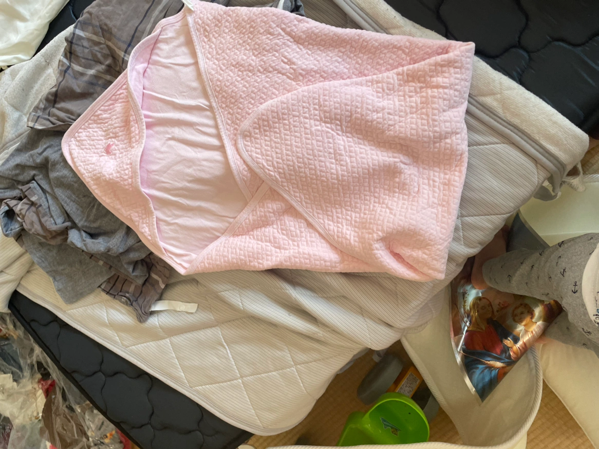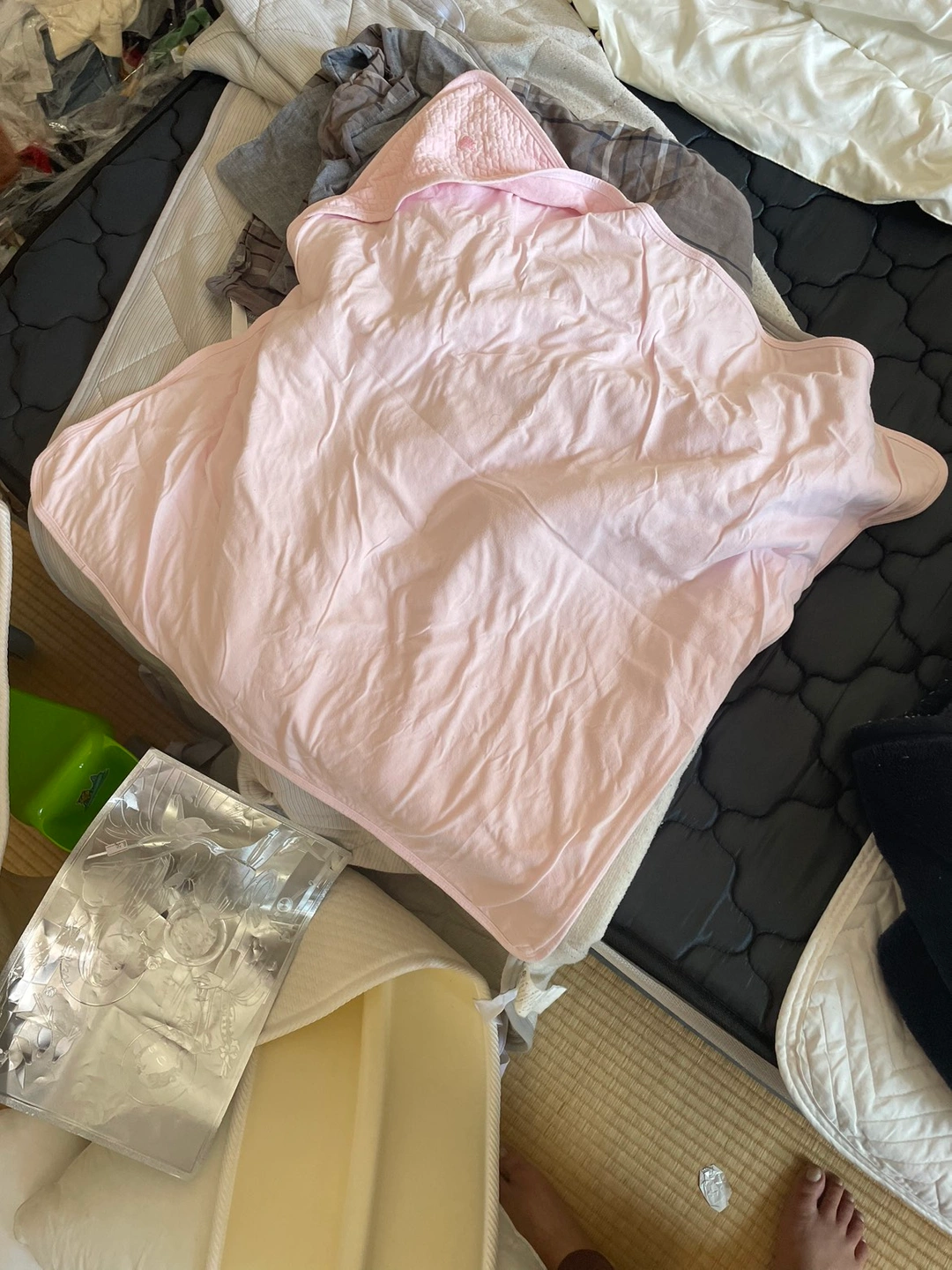 ベビータオル。生まれたばかりの赤ちゃんを抱くために使われていましたが、赤ちゃんのバスタオルとしても使えます。