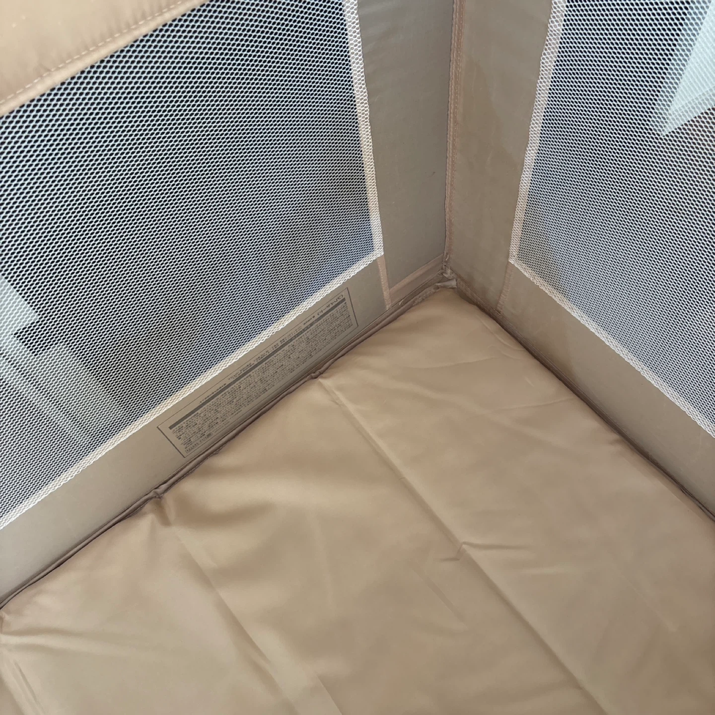 ベビーベッドです。 ハイハイするようになったら囲いにもなります。 ・色:ベージュ ・対象年齢:新生児〜2歳 ・全体的にきれいですが一部シミあり (写真でご確認ください) ・収納袋付き 中古品であることご了承ください