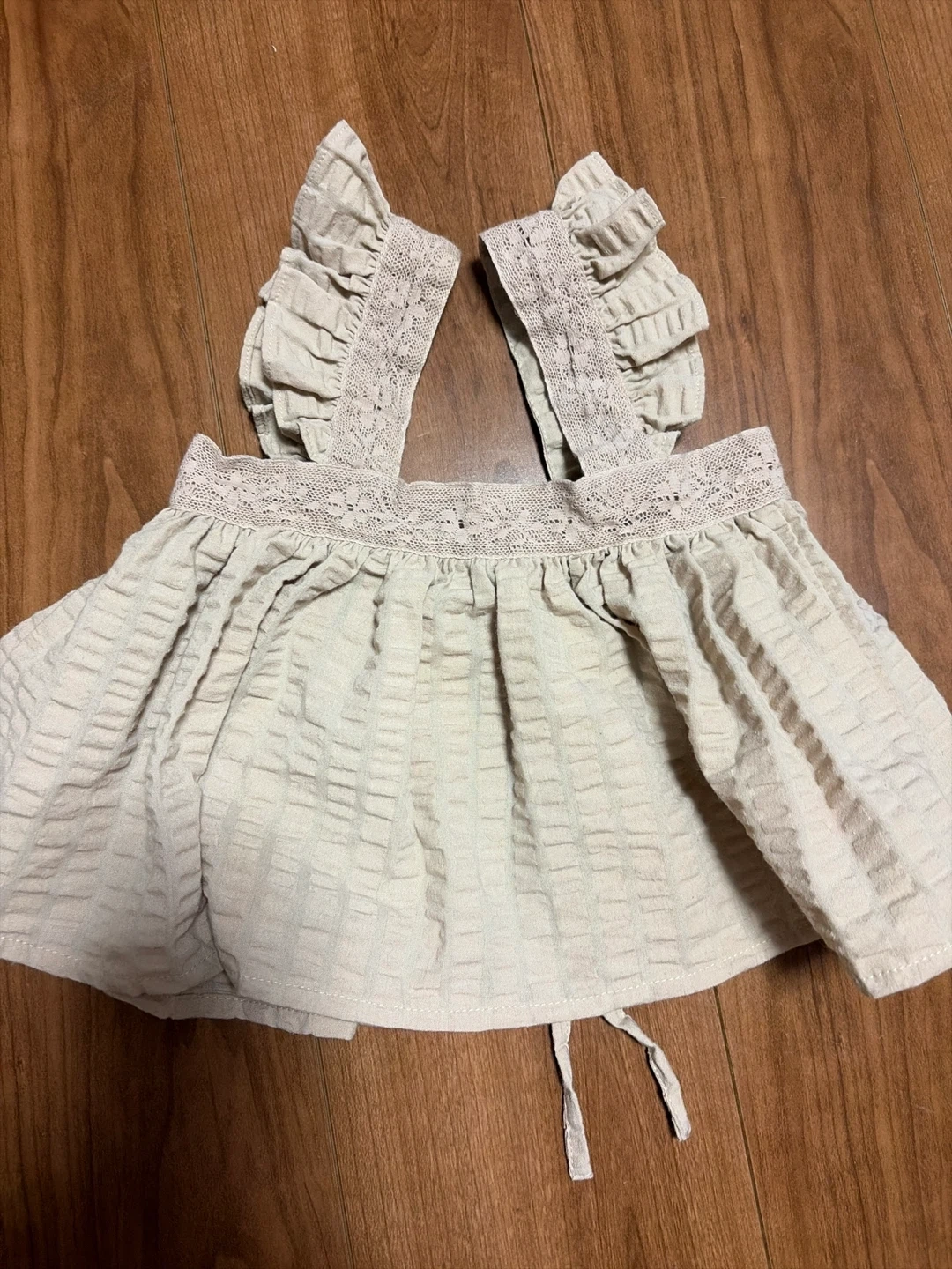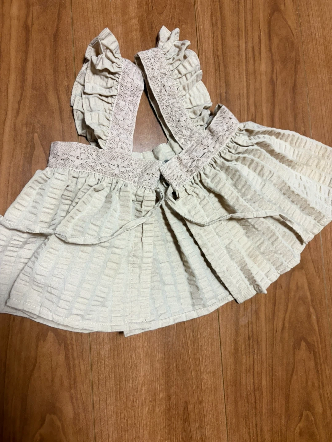 ベビー服のエプロン ・色:ベージュ ・フリルとレースの装飾 ご不明点があればお気軽にご連絡ください