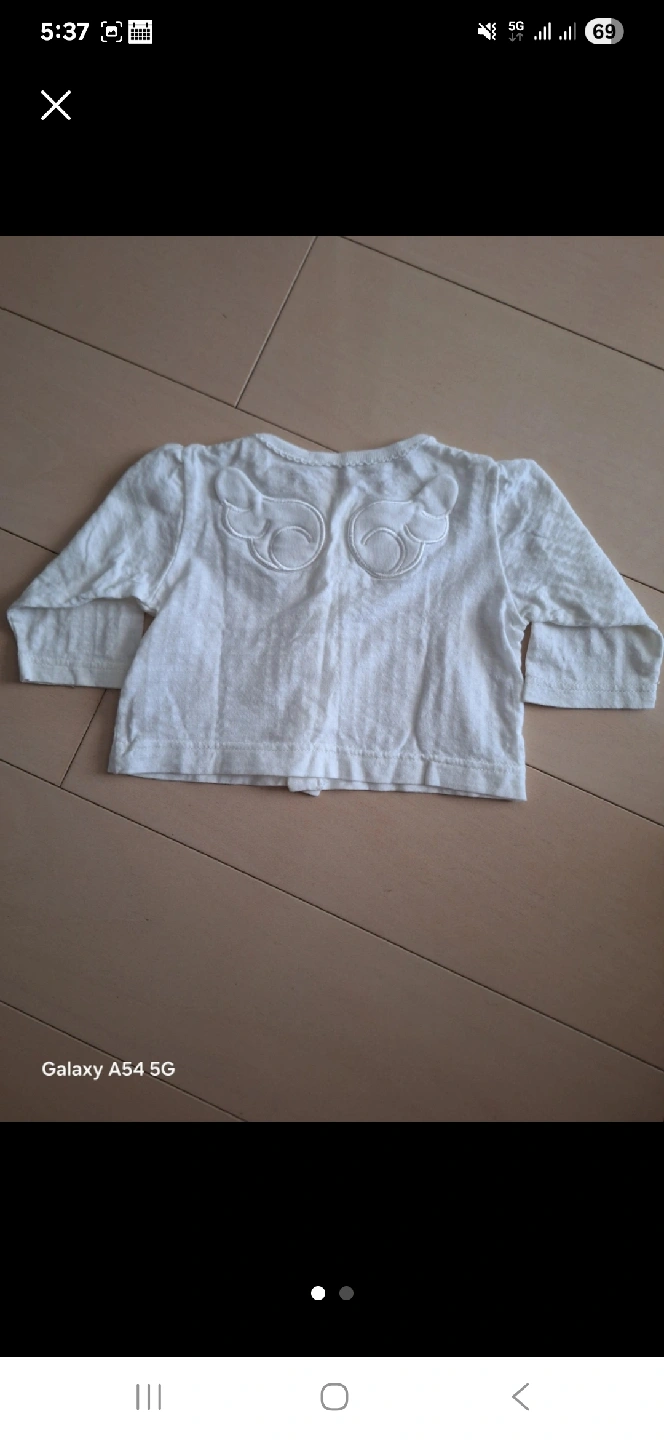 ベビー服のカーディガンです。 サイズダウンのため出品します。数回しようしました。綺麗な状態です。 ☆他サイトでも出品してます。なくなり次第消去します。ご了承ください! ・色:白 ・サイズ:60 ・目立った傷や汚れなし ご不明点があればお気軽にご連絡ください