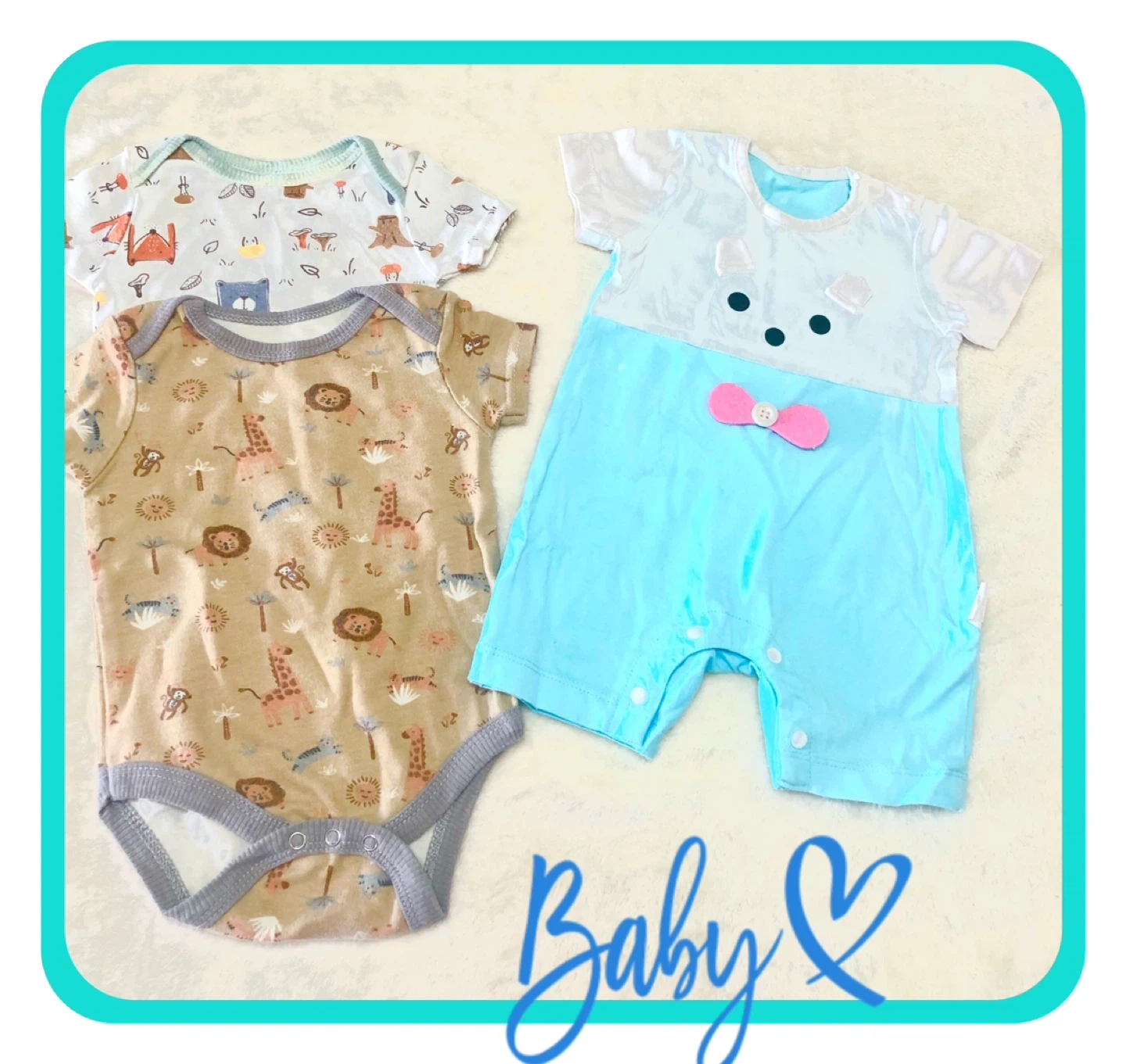 👶🩵ベビー服3点、ロンパース、50~60cm