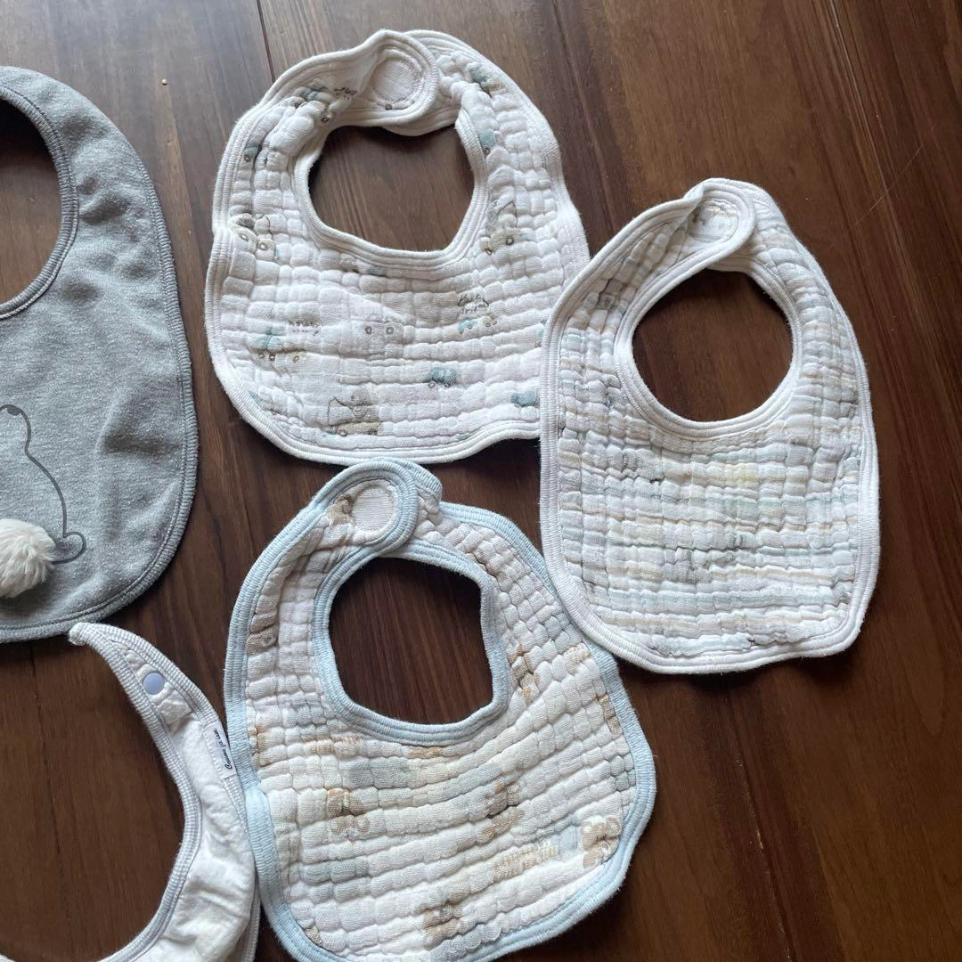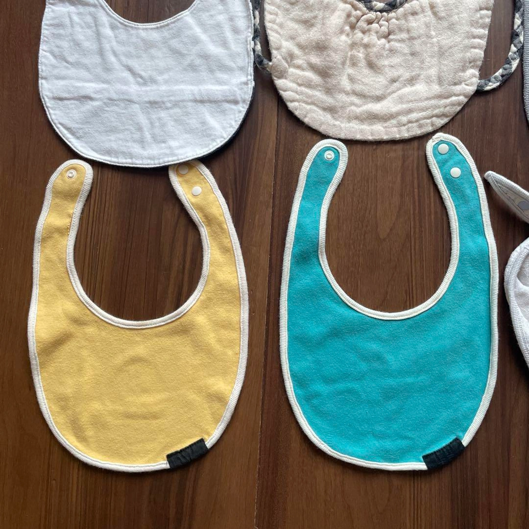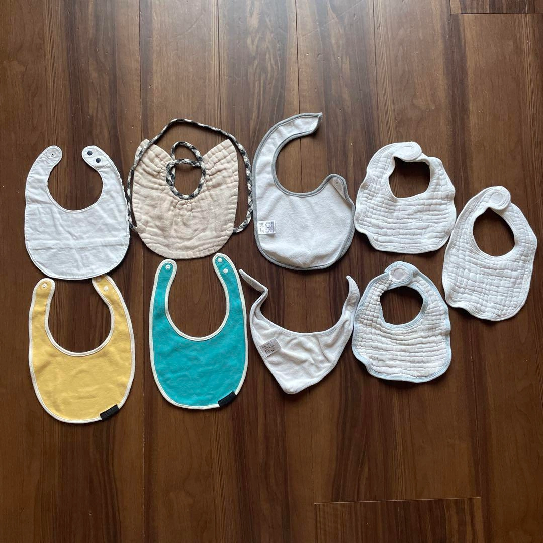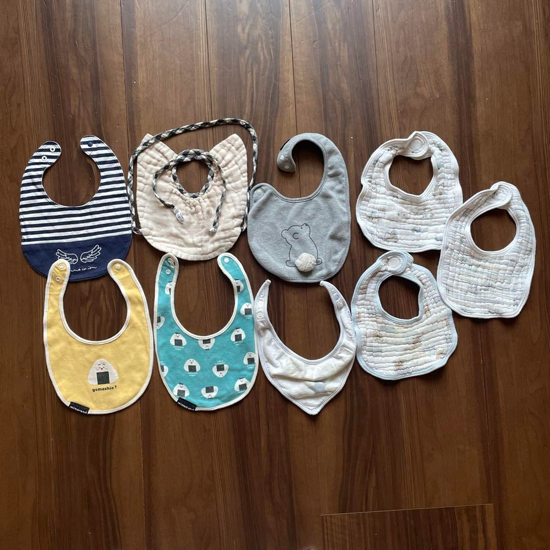 多様なデザインと色のベビー用スタイ、9枚セットです。 お出かけ用と、家でつける用で分けて使用していました。 お出かけ用のものはあまり汚れはありませんが、家用のものには少し黄ばみがあり、使用感があります。 ホームクリーニング済みです。 ご理解いただける方のみ、よろしくお願いします。 ご覧いただきありがとうございます。