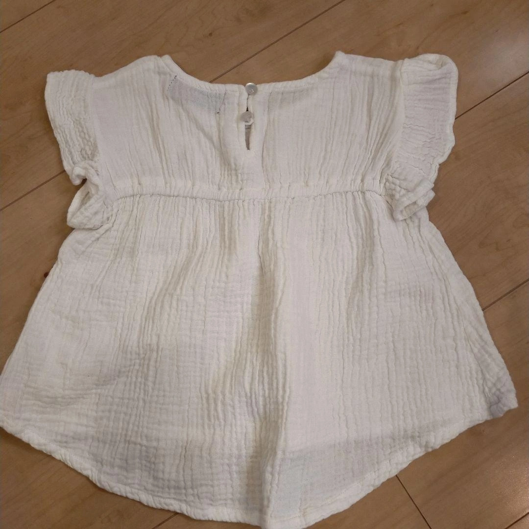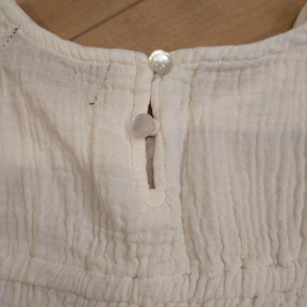 白色の95サイズのトップス、胸元に刺繍が施されています。 - サイズ: 95 - デザイン: 白色のトップス、胸元に刺繍のデザイン - バックスタイル: 後ろにボタン付き ご覧いただきありがとうございます。 二重ガーゼのような生地の可愛いトップスです! 後ろが長めのデザインで、ふわっとしたシルエットなので重ね着にすると可愛いです。 襟元と裾のEASTBOYのロゴは消えてしまっていますが、その他大きな汚れや傷はありません。 後ろボタンですが、上から2つ目のボタンが緩んでいます。 気になるようであれば手直しお願いします。 新品ではありませんので着用感はありますが、 毛玉や汚れもなく、比較的きれいかと思います。 洗濯タグにお名前シールを貼っていたので剥がしてお送りします。 他にも子ども服を多数出品しています。 おまとめ買いでお安くできます! ご相談ください。