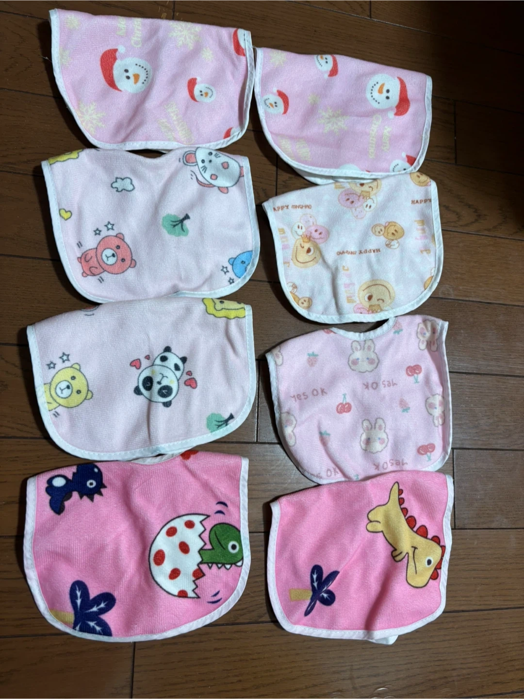 ベビー用のスタイ8枚セットです SHEINで購入したスタイです! 食事エプロンをすんごく嫌がる娘でしたがスタイは付けてくれたのでこちらで代用していました! 食事用として使っていましたがそんなに汚れはないかも?です! 普通のスタイとしても使えます!! 他にもスタイ出品してます! まとめ買いお声掛けください!