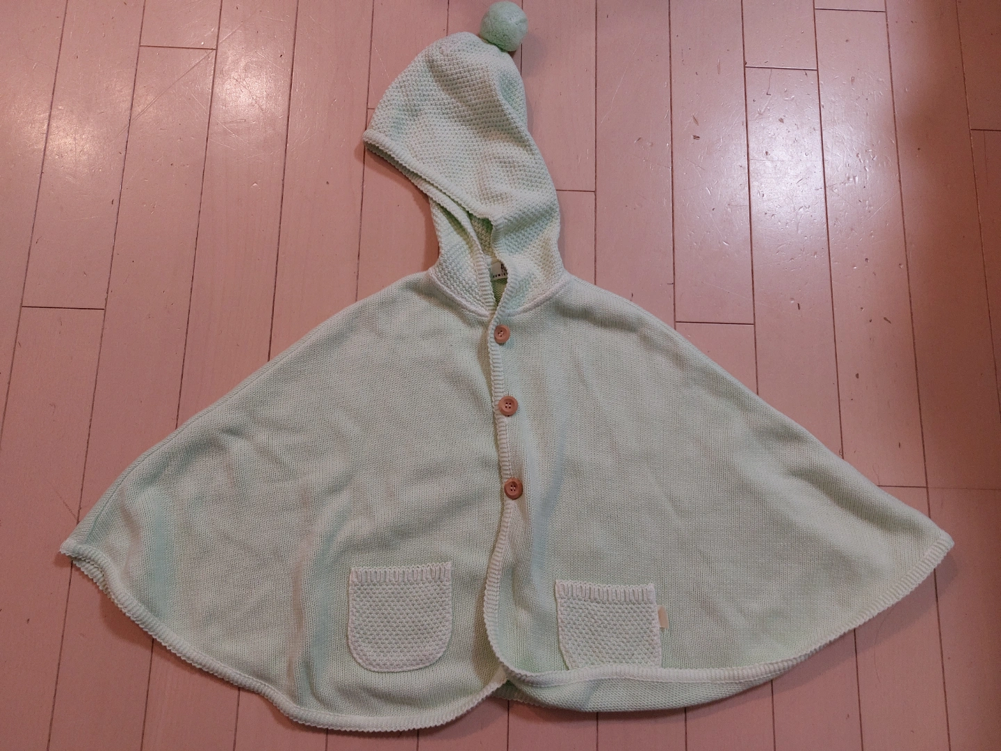 ・ベビー用ポンチョ(組曲) ・色:薄緑色 ・フード付き、ポンポン付き ・ポケット2つ ・ボタン3つ ご覧頂きありがとうございます♪ 子供がサイズアウトした為の出品です。 組曲(オンワード樫山)の子供服です。 80cm~90cm用ですが、ポンチョなので、100cmぐらいのお子さんでも着用可能です。 ※子供が着用した中古品であるということを ご理解頂きますよう、お願い致します。 ※素人 自宅保管です。