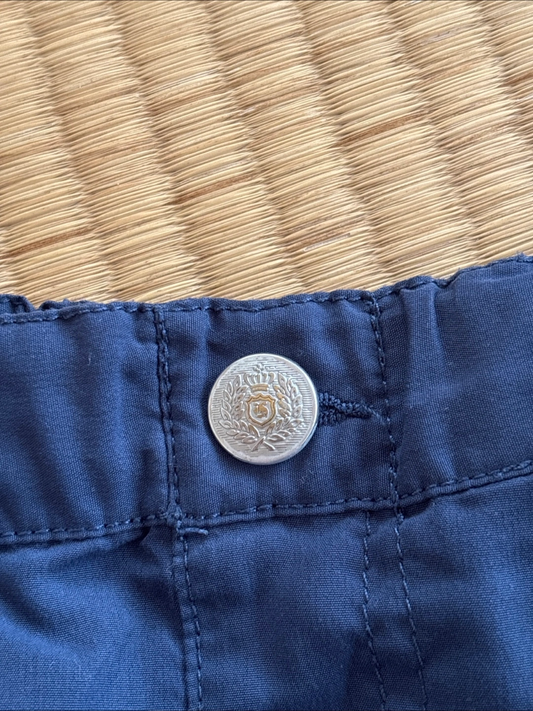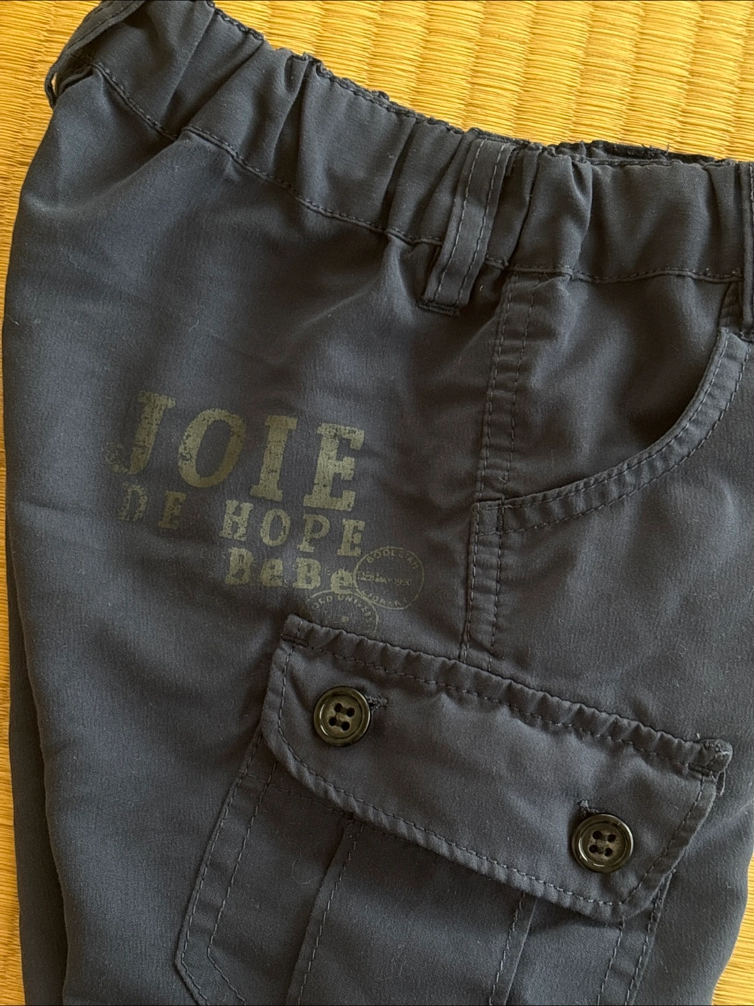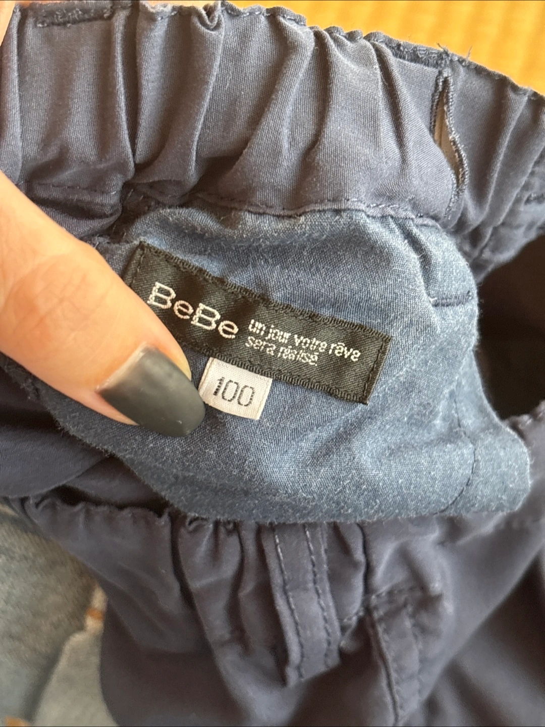 あたたかさ・ブランド:BeBe ・サイズ:100 ・カラー:ネイビー ・デザイン:ロゴ入り ・ウエストゴム ・両サイドポケット、ボタン付き