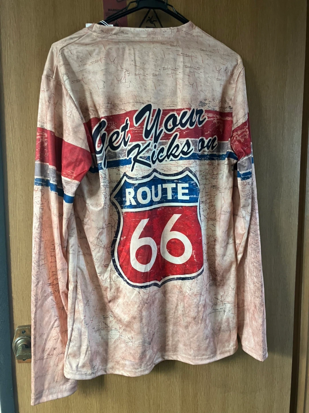 ベリーキーの長袖Tシャツです ・サイズ: S ・素材:95% ポリエステル、5% スパンデックス ・デザイン:ROUTE 66 ・製造国:中国 ご参考までにサイズは身幅47、着丈67センチです。 サイズ表示は Sとなっていますが、輸入品なので、国産のMからLに相当すると思います。 自宅近辺まで取りに来てくださる方限定でお願いいたします。 事前にご連絡をいただければ、曜日問わず11時から18時の間お引き渡しができます。