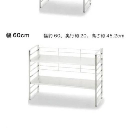 オールステンレスの頑丈な出窓ラックです。 ベルメゾン、下村企販。 新品未使用品ですが、確認のため開封済み。メーカー箱に入ったままです。 ■幅60/奥行約20、高さ約45.2cm ●耐荷重量/棚板:約20kg(1段あたり) ●主材/本体・バックネット・棚板:ステンレススチール、脚ゴム:シリコーンゴム ●可動棚2枚 ●日本製 ●組立時間:30分-※上記の組立時間は大人二人で組立作業に掛かる時間の目安です。 ●サビに強く丈夫なステンレス製ラックは、湿気の多い出窓やキッチンカウンター、コンロ奥のスペースなどにぴったり ●デッドスペースを利用してたっぷり収納することができます ●耐荷重は1段あたり約20kgという頑丈さで、小物や調味料類はもちろん、重たい鍋やフライパンなども気兼ねなく置けるのが魅力 ●棚の高さは、使い勝手に合わせて約5cmピッチ、8段階に調節OK ●後ろからの落下を防ぐバックネット、接地面の傷つきを防ぐゴム脚付きです ●差し込むだけの簡単設置なのに、安定していて横揺れに強いところもうれしいポイント ご希望の方はお気軽にご連絡ください。