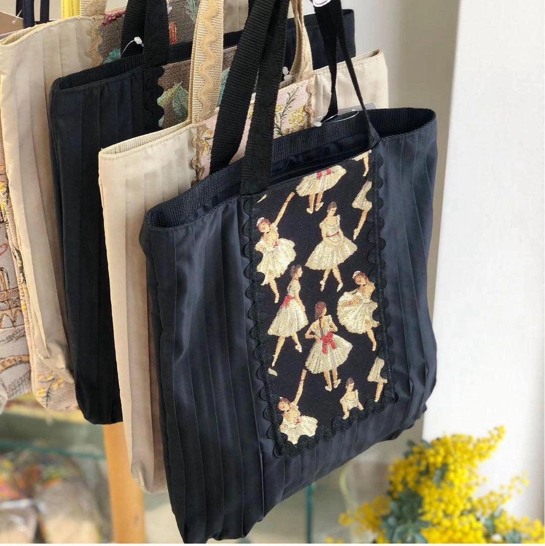 ベル・ブランシェ / プリーツ手さげ バレエ黒 【日本製】 品番: 502452-3101 上品な ベルギー製ゴブラン生地をポイントにあしらったトートバッグ。 プリーツがエレガントな印象。 持ち手部分のデザインにもこだわった、軽量で使いやすいバッグです。 ポケット:ファスナー付き1 ギフトとしてもお喜び頂けるお品です。 ※総柄生地のため生地の裁断部分により柄の出方が異なります。 サイズ:約31×29×6cm 100g 素材:ベルギー製ゴブラン生地 プリーツ部分:ポリエステル100% 産地:日本 Belle Branchee ベル・ブランシェはお洒落なマダムたちの御用達ショップです。別れた後の印象がさわやかな、ふと思い出してもらえるような目立たないように目立つ、ステキなものを心がけて製作・取り揃えております。 ヨーロピアンエレガンスのテイストを醸し出すイタリア、ベルギーなどのゴブラン生地を使った、軽くて使いやすく機能的なバッグは働く現代女性の多くにも支持され続けています。 他にも数出品しておりますので是非ご覧下さい(^^ ) カラー···ブラック ご希望の方はお気軽にご連絡ください。