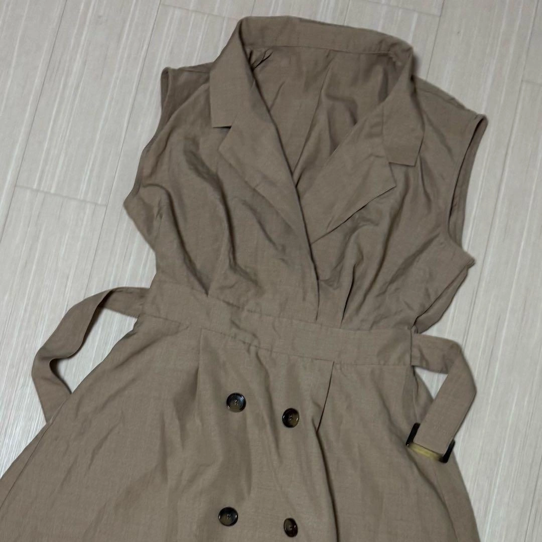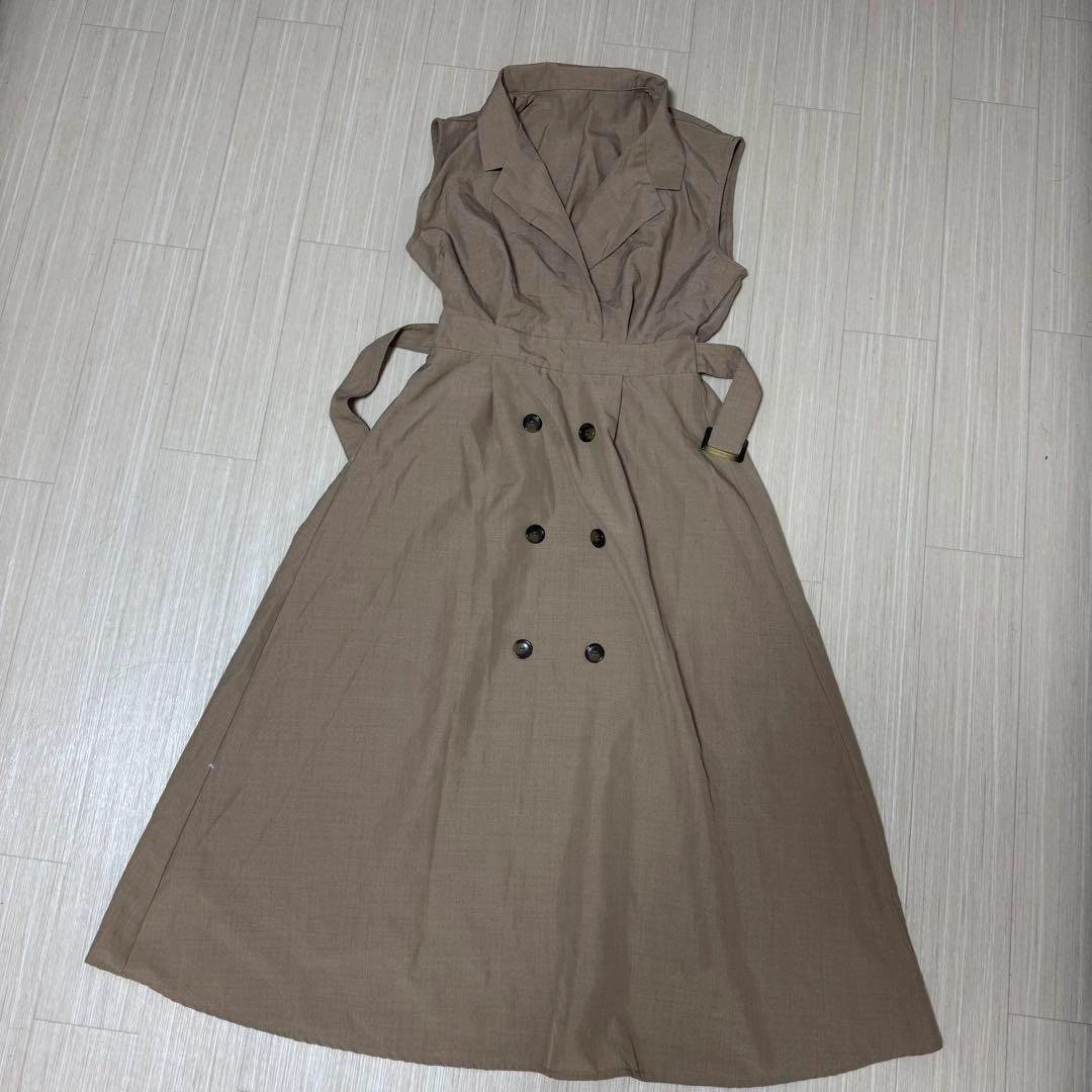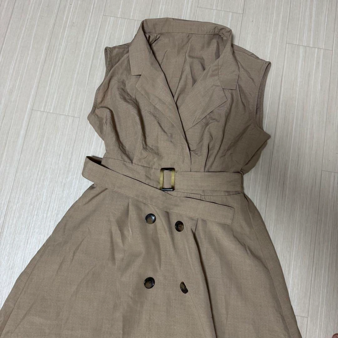 ベージュのノースリーブワンピースです。ウエストベルト付き。明るいベージュ色です。 あまり使用感の感じないお品です。夏はノースリーブのままで、秋はインナーに長袖のTシャツを合わせて着ていただけます。 - サイズ: M - 品質: GRL - 色: ベージュ - デザイン: ノースリーブ、 ウエストベルト付き、ダブルボタン ご希望の方はお気軽にご連絡ください 他のお品物とおまとめの場合、 お値引き致します。 受け渡しは10/8〜14迄 いなげや関町店入口宝くじ売り場辺り、上石神井駅、タイミングにより吉祥寺駅も可能な場合があります