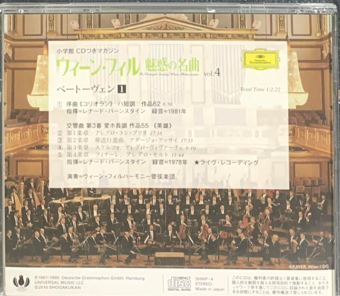 ウィーン・フィル 魅惑の名曲 ベートーヴェン 序曲<コリオラン>ハ短調 作品62 指揮=レナード・バーンスタイン 録音=1981年 交響曲第3番 変ホ長調 作品55 《英雄》 第1楽章はアレグロ・コン・ブリオ 第2楽章 葬送行進曲.アダージョ・アッサイ 第3楽章 スケルツオ アレグロ・ヴィヴァーチェ 第4楽章 フィナーレ アレグロ・モルト 指揮=レナード・バーンスタイン録音=1978年★ライヴ・レコーディング 演奏=ウィーン・フィルハーモニー管弦 ご希望の方はお気軽にご連絡ください。
