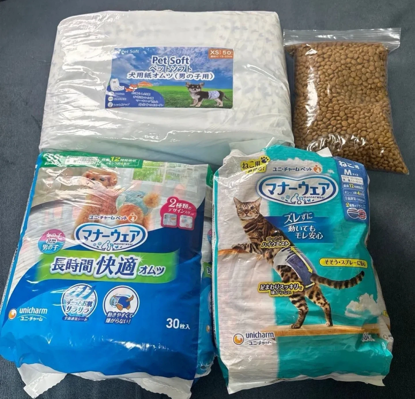 【商品内容】 ・Pet Soft ペットソフト 犬用紙オムツ (男の子用) XSサイズ 50枚入(未開封) ・ユニチャーム ペット マナーウェア 長時間快適オムツ 男の子共用 30枚入(開封してサイズ試しため、多分一枚使いました、数えていません) ・ユニチャーム ペット マナーウェア 猫用 Mサイズ(開封したサイズ試しため、多分一枚だしました) ・ペットフード犬用 (慢性心臓病対応) 自宅保管のため、ご理解いただける方のみご購入をお願いいたします。 よろしくお願いいたします。 永福町駅北口でお手渡しをさせて頂きます。