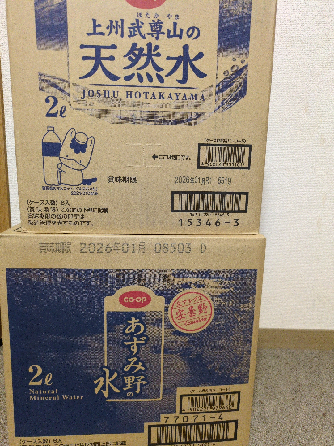 2リットル6本入りの水です。コープで買いました。飲み切れなくなりましたので飲んでいただける方 宜しくお願い致します。2箱あります。1箱300円でお願いします。バラでも大丈夫です。2本100円からお願い致します。