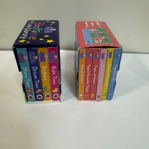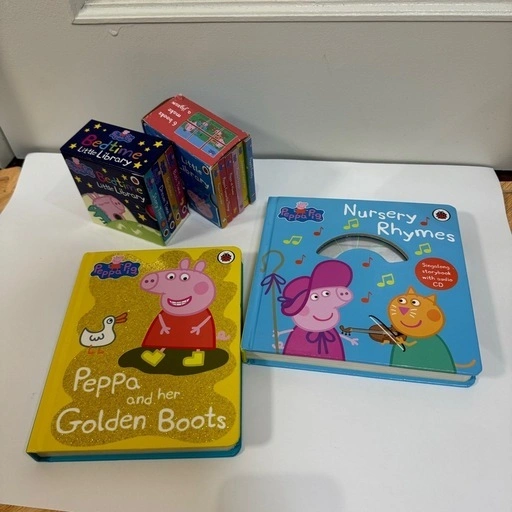 Peppa Pigの英語絵本セットです。全てボードブックなので破れなどはなく美品です。 ・Bedtime Little Library 4冊入り ・LITTLE LIBRARY(BB) 6冊入り 手のひらサイズのミニ絵本です。 どちらも入れ物には使用感あります。 簡単な英語で1冊のお話も短く、テレビで見たお話と似たようなシーンがあり幼児におすすめ。 ・Peppa and her Golden Boots 表紙がギラギラで可愛いです♡ ・Nursery Rhymes: Singalong Storybook with Audio CD CD付きの童謡ブックです 再生確認済み おうち英語 多読 ペッパピッグ ご希望の方はお気軽にご連絡ください。