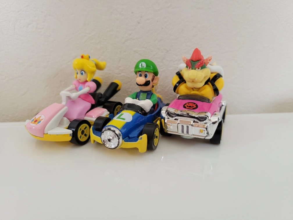 ホットウィールマリオカートミニカー ルイージ ピーチ クッパ の3点セットです。 よろしくお願いします。