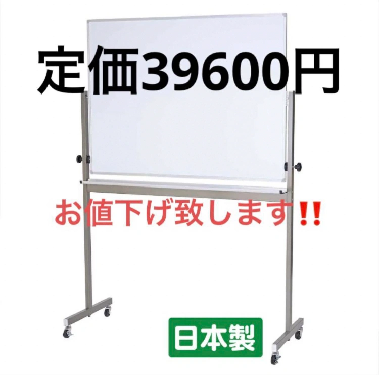 ホワイトボード 面のサイズ120/90 両面使えるのでとても便利です。 オマケ:パイロット イレイザー付き 使っていたので汚れ傷ありますが、使用に問題のある傷汚れはありませんので、まだまだ永く使っていただけると思います。 写真1枚〜2枚目はイメージです。3枚目以降が実物の写真です。 分解してありますので、すぐに車等に入れて運んでいただけます。ざっくりとですが120/90位のスペースが取れるお車等であればすぐに入れて運んでいただけると思います。