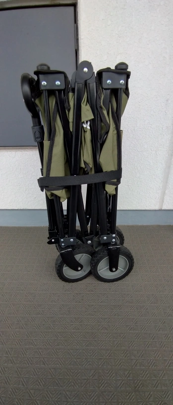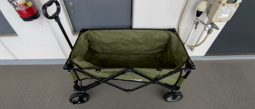 ホームゼストのキャリーワゴンです ・色:カーキ ・折りたたみ可能 ・使用感少なめ 中古品であることご了承ください キャンプで1回使用したキャリーワゴンです。これからの季節キャンプやアウトドア、非常用にも使えると思います。 よろしくお願いします。
