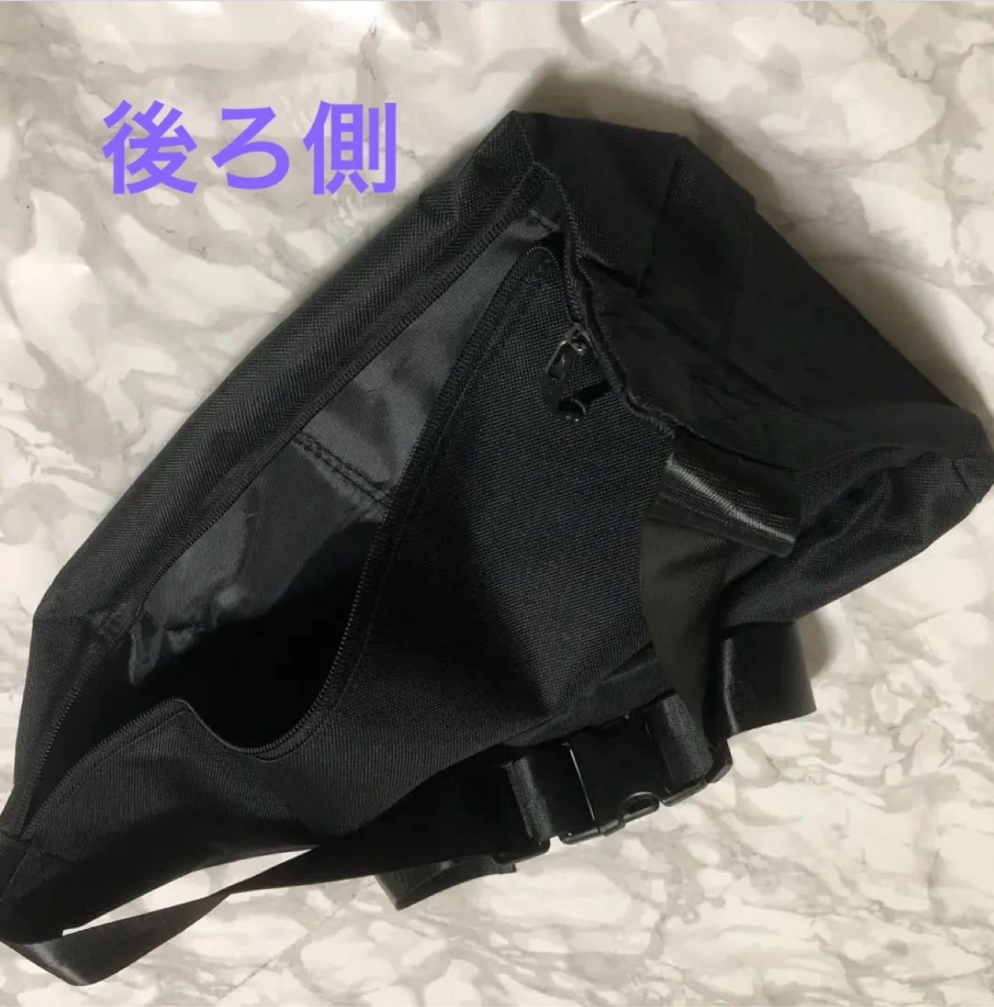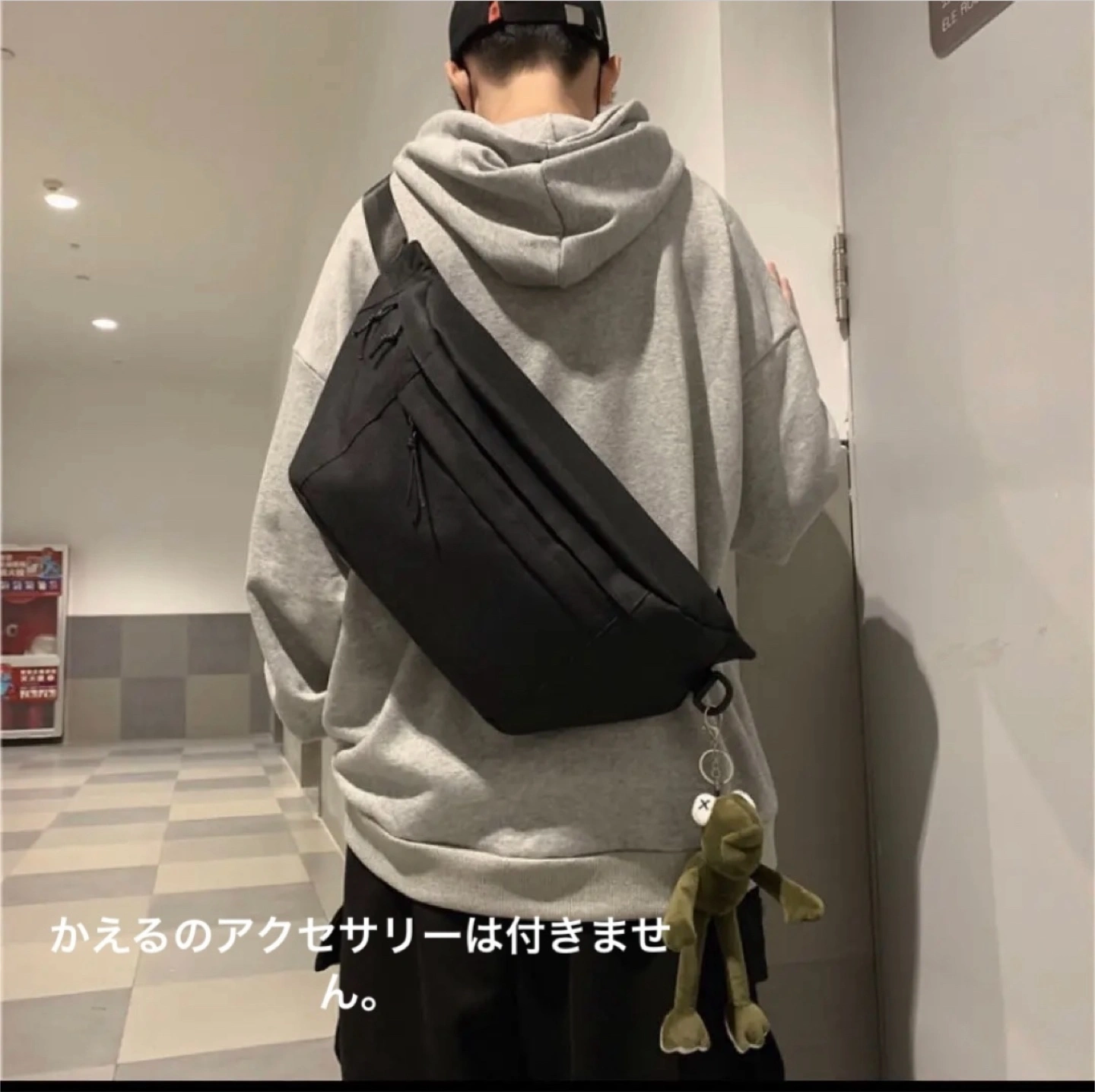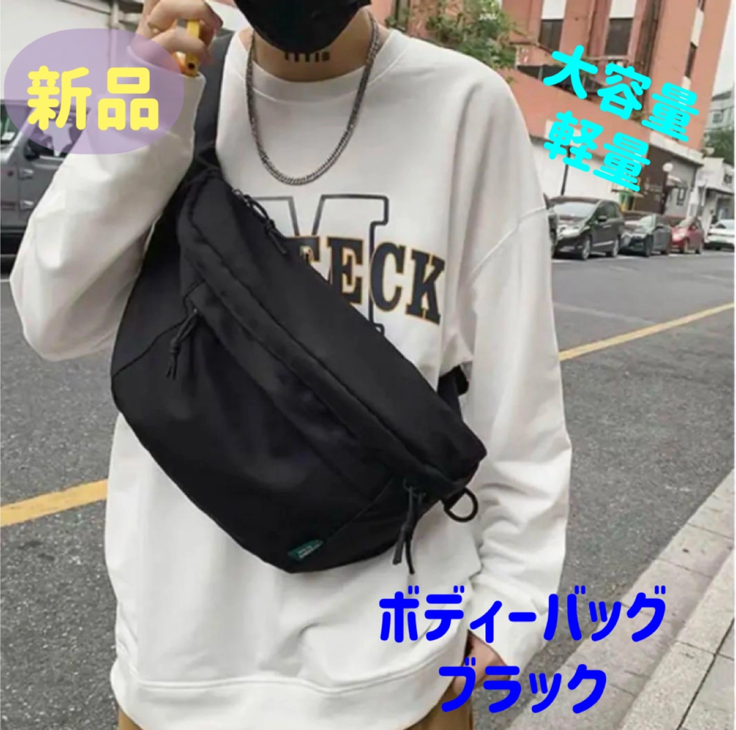 新品未使用品 ⚫︎シンプルなデザインの大容量ボディバッグです。 1つあるととても便利です。 ⚫︎スタイリッシュで肩にかけ易いショルダーバッグです。 ⚫︎しっかりした生地で、軽くて丈夫! ●カラー:ブラック ●サイズ 縦22㎝ 横(上部)50㎝ 横(下部分)30㎝ マチ(下部分)8㎝ ショルダー:最長約98㎝ 総重量: 280g *素人採寸のため多少の誤差はご了承ください。 ● 素材: ポリエステル ● 複数あるポケットで荷物整理もとても便利です。 ポケット3つ: メイン(前面上部)、フロント(前面下部)、後面 メインポケットには内側に小さなメッシュポケットが又2つあります。(7枚目写真) ●色はどんな物にもマッチする 黒の無地 です。 ●男女兼用で使える大きさとデザインです。 通学やお出かけなどの普段使いから、旅行、キャンプ等のアウドドアまで幅広い場面で大活躍です♡ ●その他、注意事項 ※新品未使用品ですが、海外輸入品の為、日本製と比べると縫製が甘い部分・雑な部分がある可能性があります。 ※インポート商品でノーブランドになります。
