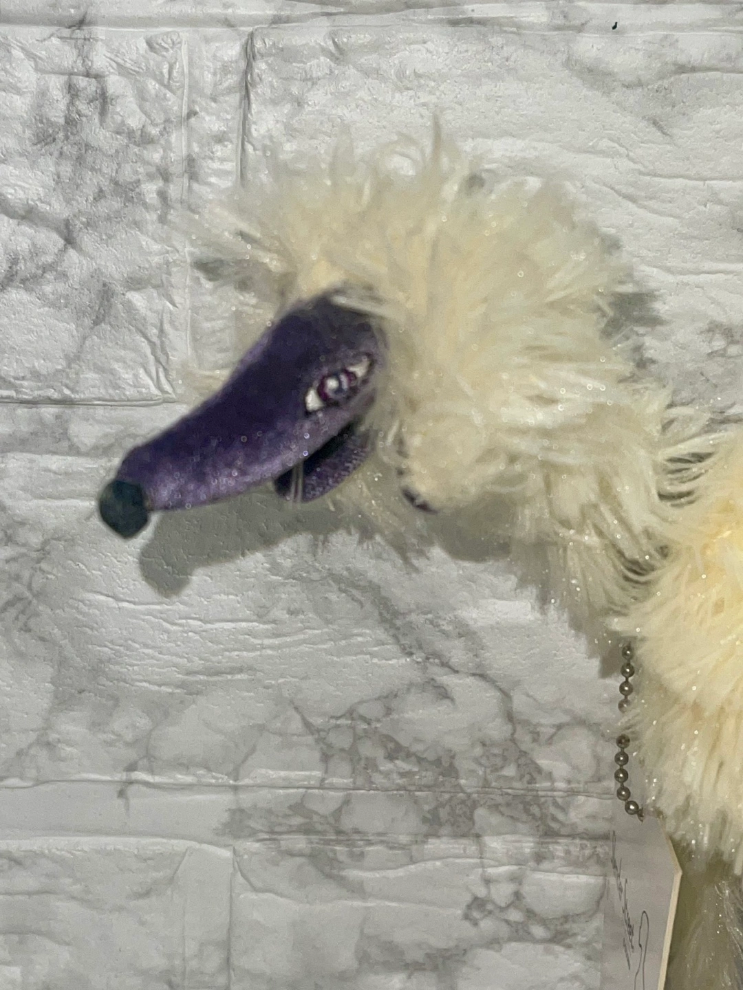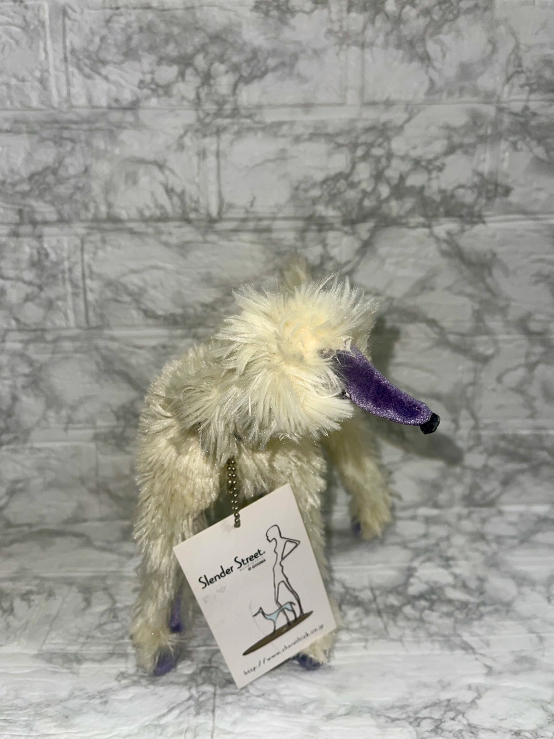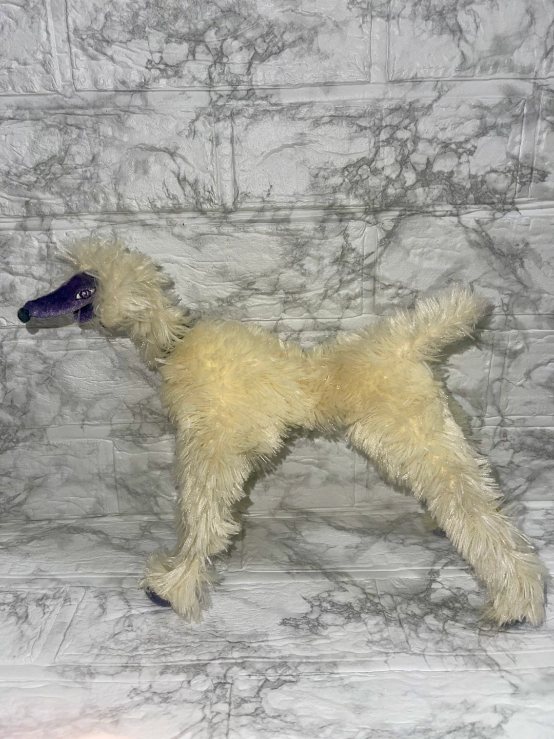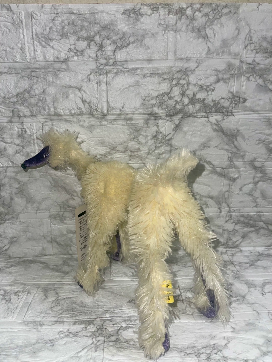 手触りがとてもよくどこか高貴な顔立ちのボルゾイ。中のワイヤーを動かすことで好きなポーズにできます。 小さめサイズですので窓際に置いたり、ちょっとしたインテリアとして楽しめます。可愛い首輪付き写真8枚目参照。 体長 (鼻の先〜お尻まで) 25cm 素材 スパンベルベット EK BOA ナイレックス(足底) タグ付き コンディション 日に当たらない場所に飾っておりましたので、やけもない美品です。 タグに表記されております会社名を検索しても出て来ず、ホームページも閉鎖されており現在住所の場所は居酒屋になっておりますので、倒産もしくは 閉業してる様子の為貴重なお品物です。 状態の判断は個人差がございます。 中古品として許容できない方、 神経質な方、完璧をお求めの方のご購入はご遠慮下さいませ。